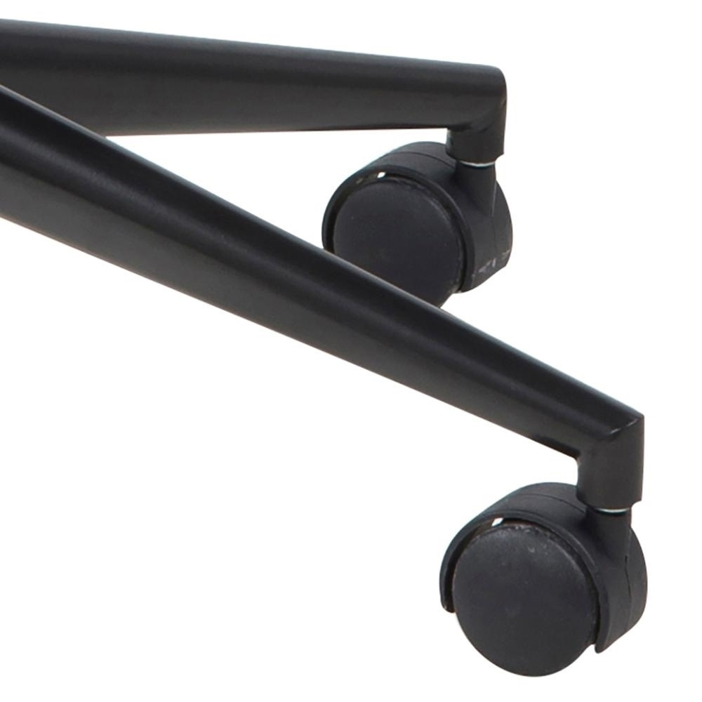 Fotel biurowy Winslow to wygodny obrotowy fotel z podłokietnikami. Siedzisko oraz oparcie krzesła zostało obite miękką czarną skórą. Poziome regularne przeszycia na fotelu dodają mu nowoczesnego wyglądu. Podłokietniki fotela również zostały obite skórą. Chromowana podstawa fotela wyposażona została w pięć obrotowych kółek. Fotel posiada regulację wysokości. Fotel posiada opcję automatycznego blokowania się kółek. Opcja ta polega, iż w momencie, gdy na fotelu nikt nie siedzi, utrudnione jest przesunięcie fotela, natomiast w momencie, gdy na nim siedzimy kółeczka obracają się delikatnie i płynnie. Max. obciążenie: 120 kg Max. ilość sztuk w kartonie: 1 Wymiary kartonu: 68 cm x 59 cm x 48 cmCechy produktu