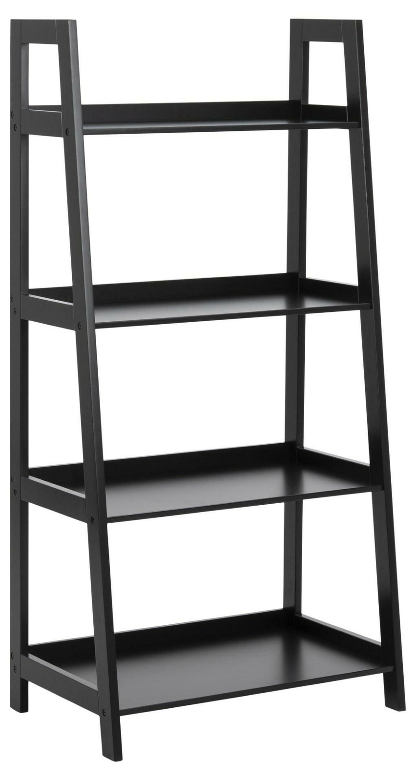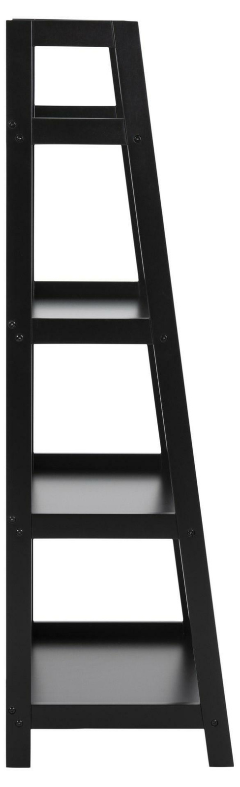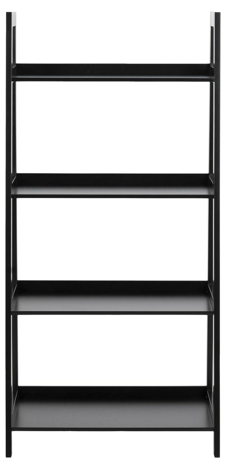 Regał Wally został zrobiony z drewna polakierowanego na czarno. Regał składa się z czterech półek, które są głębsze u dołu oraz coraz płytsze na górze. Efektowne połączenie bocznych nóg regału dodaje mu ponadczasowego wyglądu. Waga: 12 kg. Wymiary kartonu: 46cm x 138cm x 10cmCechy produktu