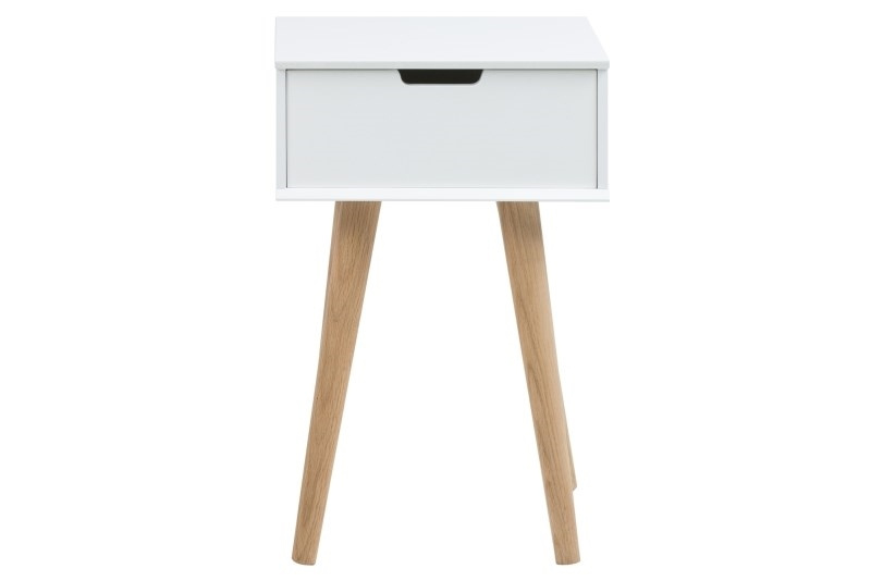 - Szafka Mitra od duńskiej marki ACTONA. Praktyczna szafka nocna z szufladą na drobiazgi. Korpus oraz front szuflady wykonano z MDF w kolorze białym. Nogi wykonano z drewna dębowego. Mitra doskonale sprawdzi się w sypialni, pokoju dziennym lub przedpokoju.