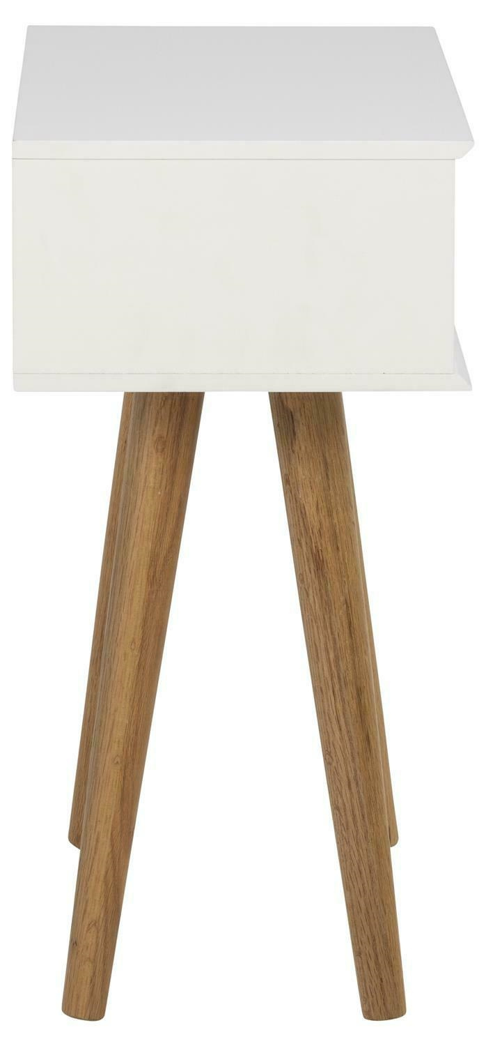 Szafka Mitra od duńskiej marki ACTONA. Praktyczna szafka nocna z szufladą na drobiazgi. Korpus oraz front szuflady wykonano z MDF w kolorze białym. Nogi wykonano z drewna dębowego. Mitra doskonale sprawdzi się w sypialni, pokoju dziennym lub przedpokoju. Wymiary: wys. 61,5 cm / szer. 40 cm / gł. 30 cm Waga netto: 7,50 kg Wymiary opakowania: 34,2 cm / 52,3 cm / 10,2 cm.Cechy produktu