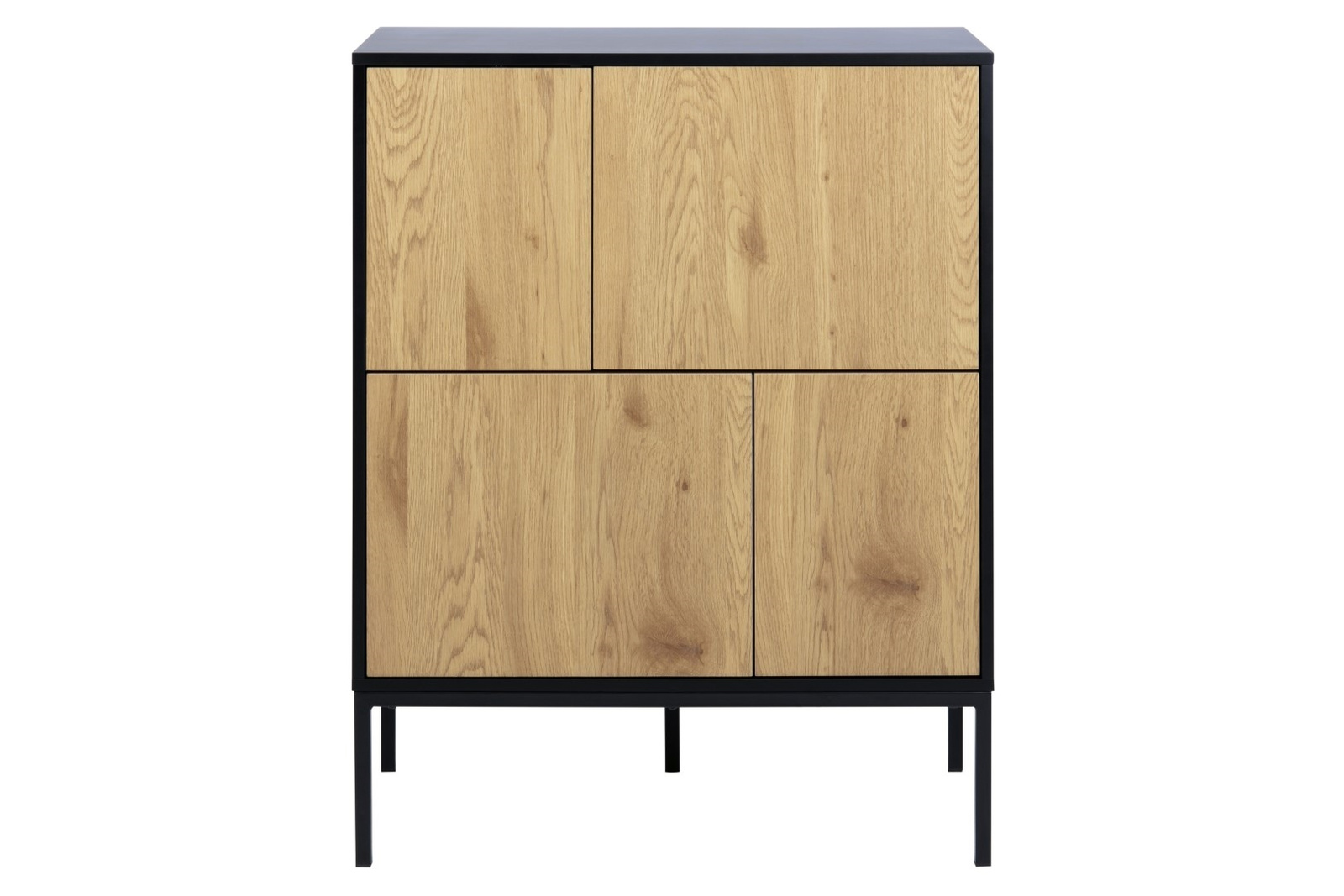 Komoda Seaford jest kolejnym meblem z industrialnej kolekcji Seaford. Komoda, złożona z czterech pojemnych szafek z drzwiczkami, została postawiona na 4 czarnych matowych nogach. Fronty komody zostały zrobione z MDF z okleiną o strukturze naturalnego dębu. Waga: 30 kg. Wymiary kartonu: 47cm x 89cm x 23cmCechy produktu