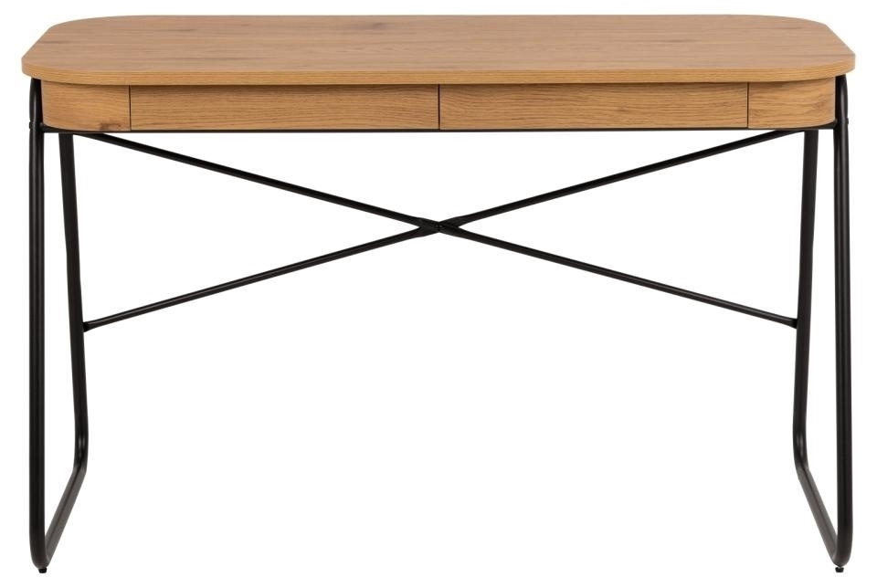 - Stworzone z myślą o przytulnym i kreatywnym kąciku w domu, biurko to z łatwością stanie się Twoim ulubionym miejscem do nagłych wybuchów kreatywności. Dębowy wygląd okleiny, zaokrąglone rogi i czarna stalowa rama tworzą ponadczasowy projekt, który emanuje