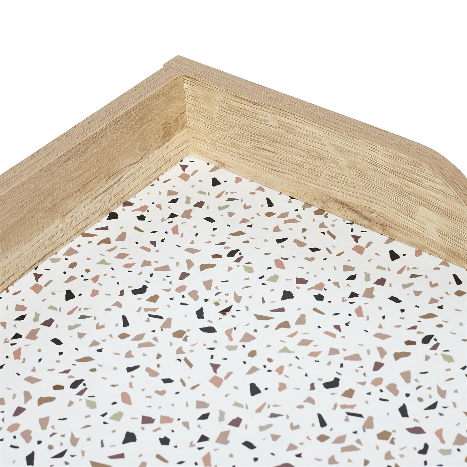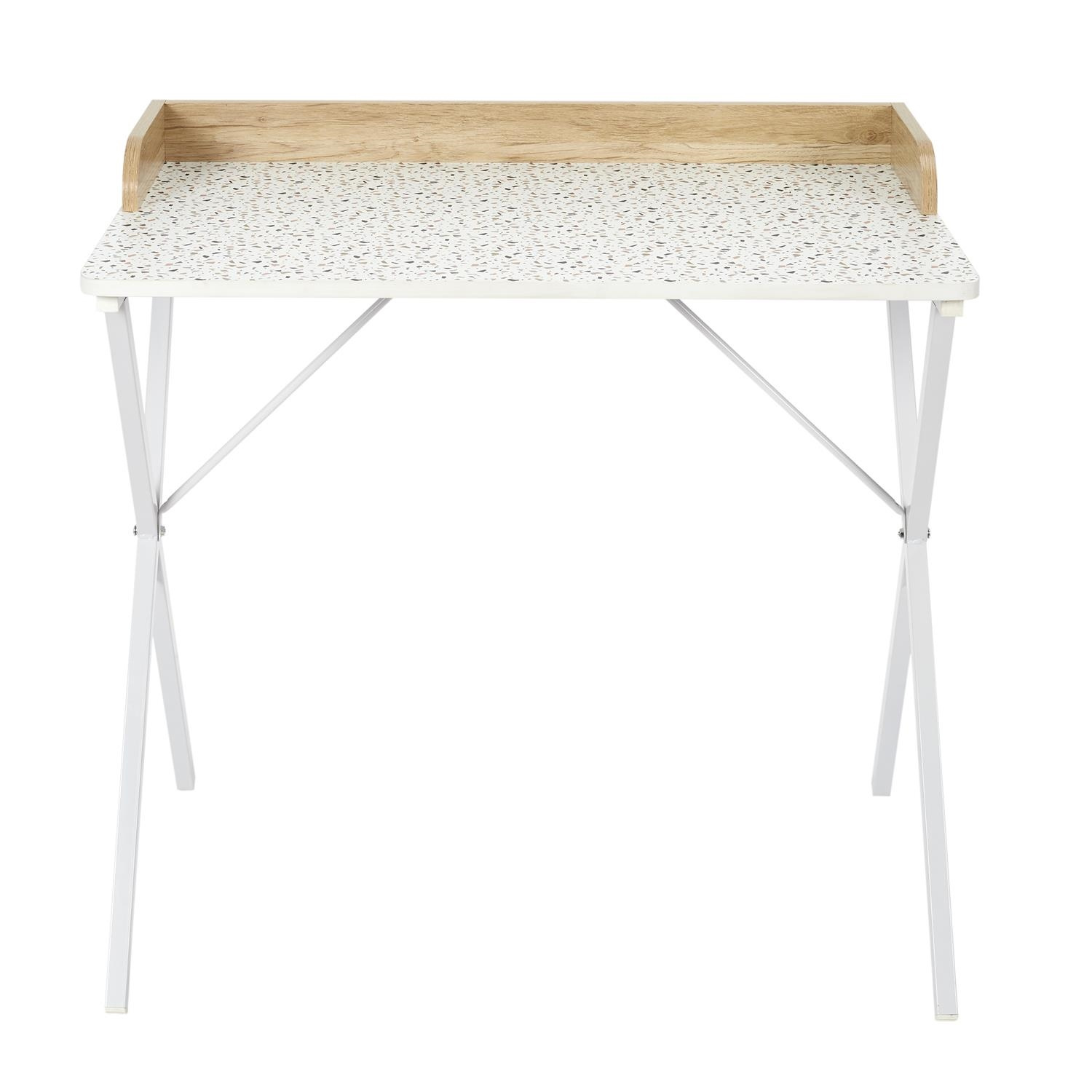 Pracuj z uśmiechem przy biurku Brice we wzór lastryko. Jego elegancki, nowoczesny design z charakterystycznym wzorem lastryko dodaje stylu i świeżości każdemu wnętrzu. Solidna konstrukcja i przestronny blat zapewniają wygodę i funkcjonalność, idealnie komponując się w biurze, domowym gabinecie lub przestrzeni roboczej. Długość produktu: 84,4 cm Wysokość produktu: 50 cm Głębokość produktu: 80 cm Materiał blatu: Drewno - MDF Materiał nóg: Metal - żelazoCechy produktu