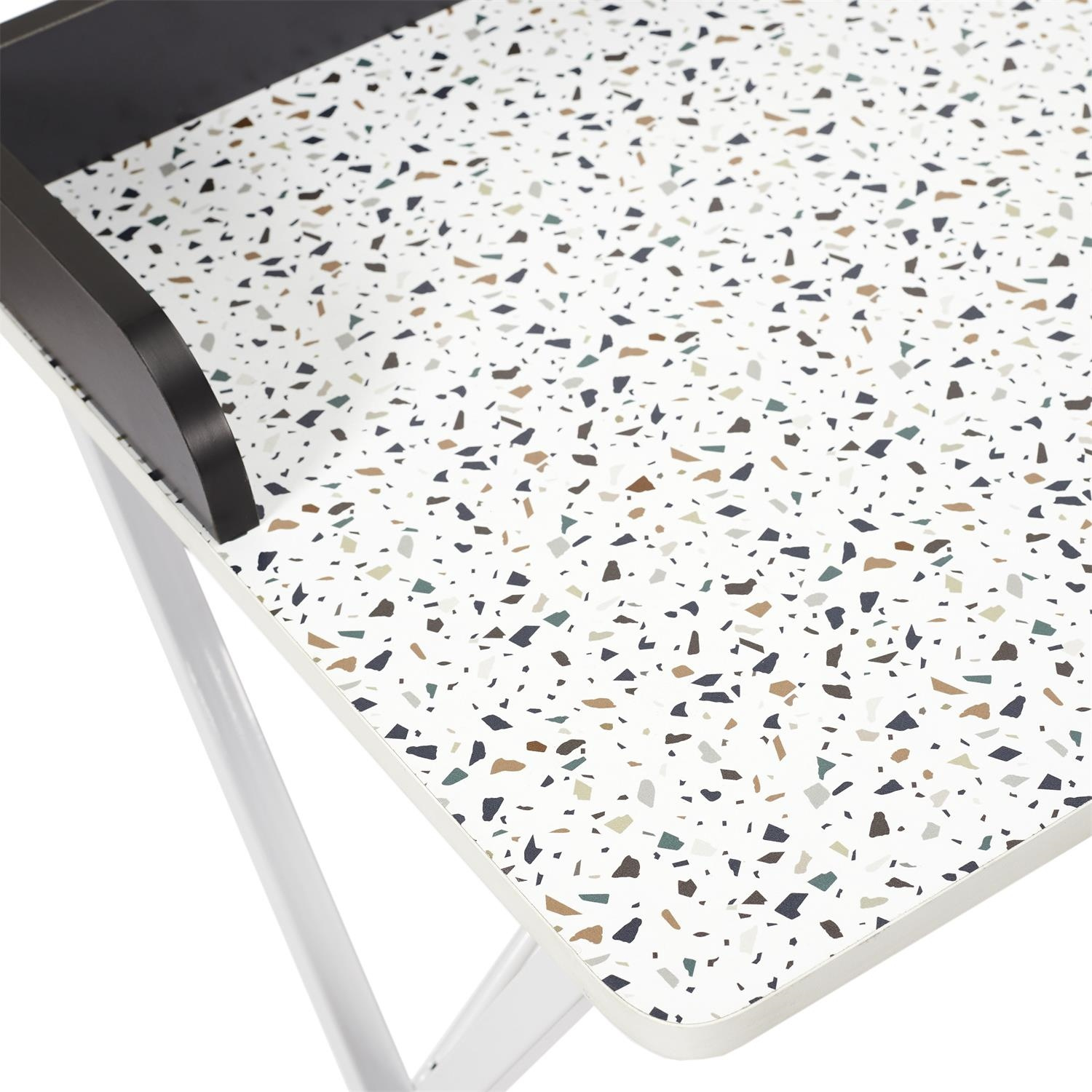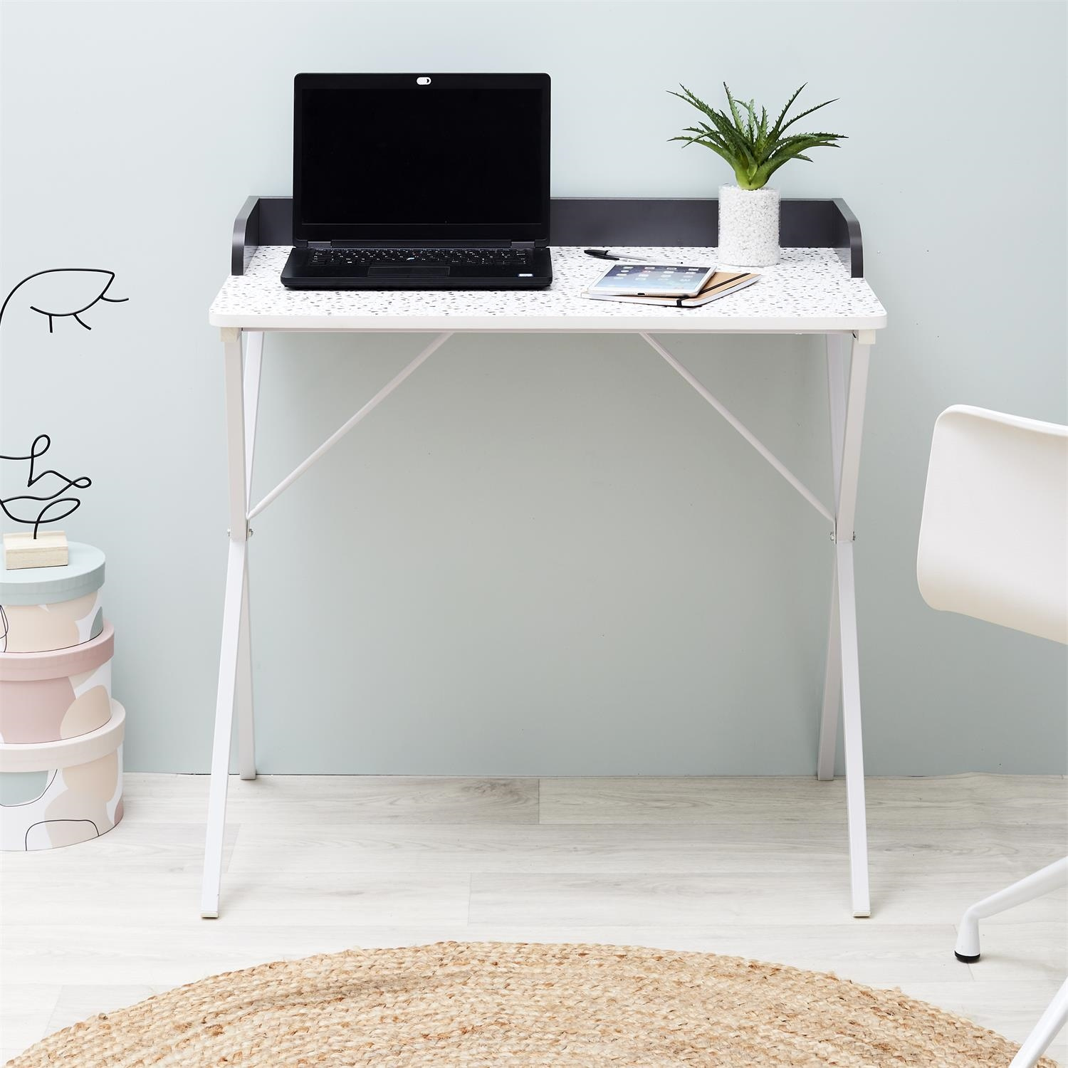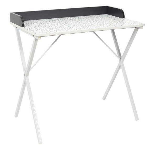 Pracuj z uśmiechem przy biurku Brice we wzór lastryko. Jego elegancki, nowoczesny design z charakterystycznym wzorem lastryko dodaje stylu i świeżości każdemu wnętrzu. Solidna konstrukcja i przestronny blat zapewniają wygodę i funkcjonalność, idealnie komponując się w biurze, domowym gabinecie lub przestrzeni roboczej. Długość produktu: 84,4 cm Wysokość produktu: 50 cm Głębokość produktu: 80 cm Materiał blatu: Drewno - MDF Materiał nóg: Metal - żelazoCechy produktu