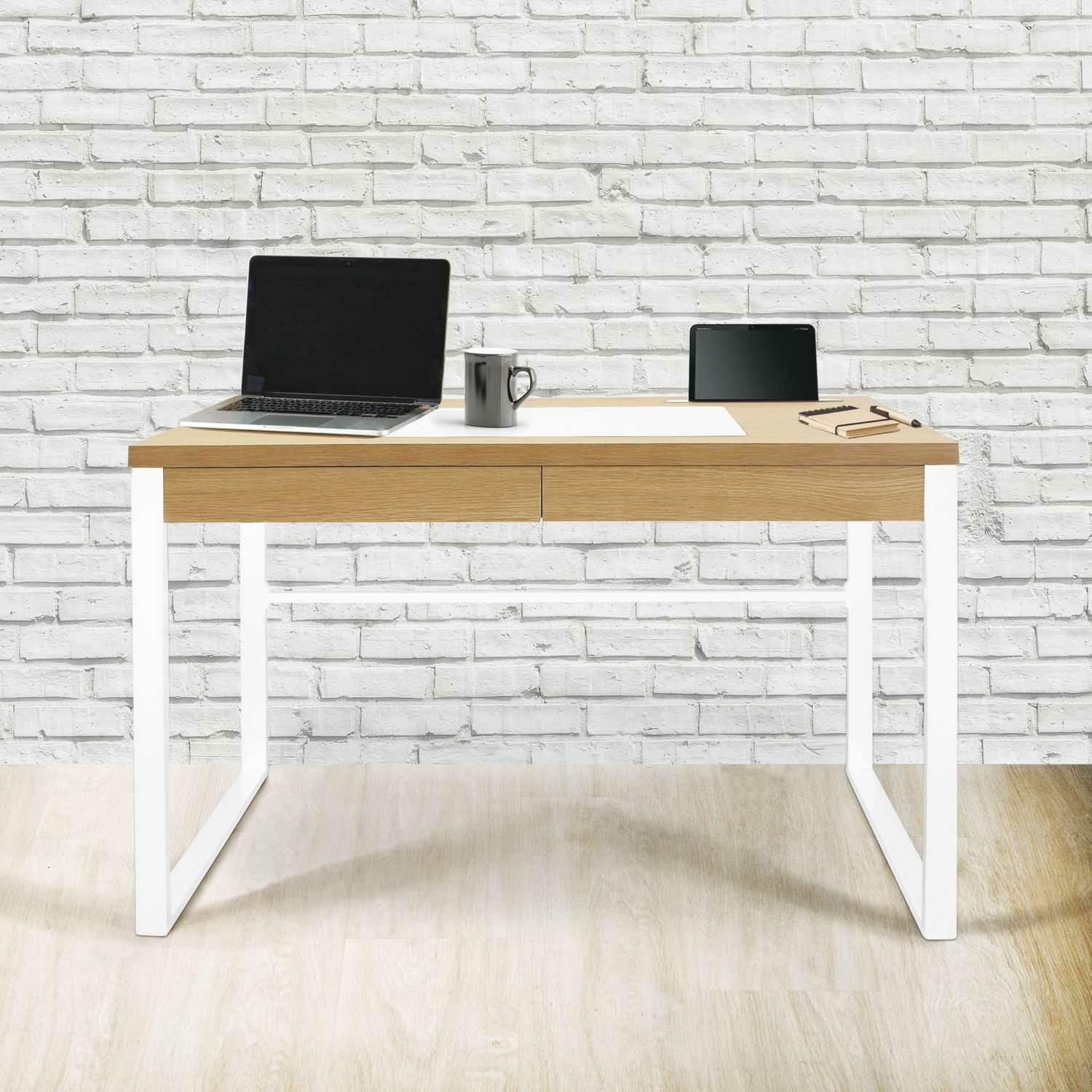 Biurko Dolem Industrial zostało wykonane z płyty MDF z okleiną w kolorze dębu sonoma. Podstawa mebla została zrobiona z metalu w kolorze białym. W środkowej części biurka znajduje się szuflada, która pozwala na przechowywanie niezbędnych drobiazgów. Biurko zostało wykonane w stylu Industrialnym. Na środku blatu została umieszczona biała podkładka z eko skóry, która będzie pomocna w pisaniu na papierze. Na blacie dostępny jest również otwór na przewód komputera. Produkt idealnie sprawdzi się w biurze lub gabinecie. Podkładka na biurku przymocowana na stałe. Waga biurka: 17 kg Maksymalna ilość szt. w kartonie: 1 Wymiary kartonu: 110cm x 59cm x 16cmCechy produktu