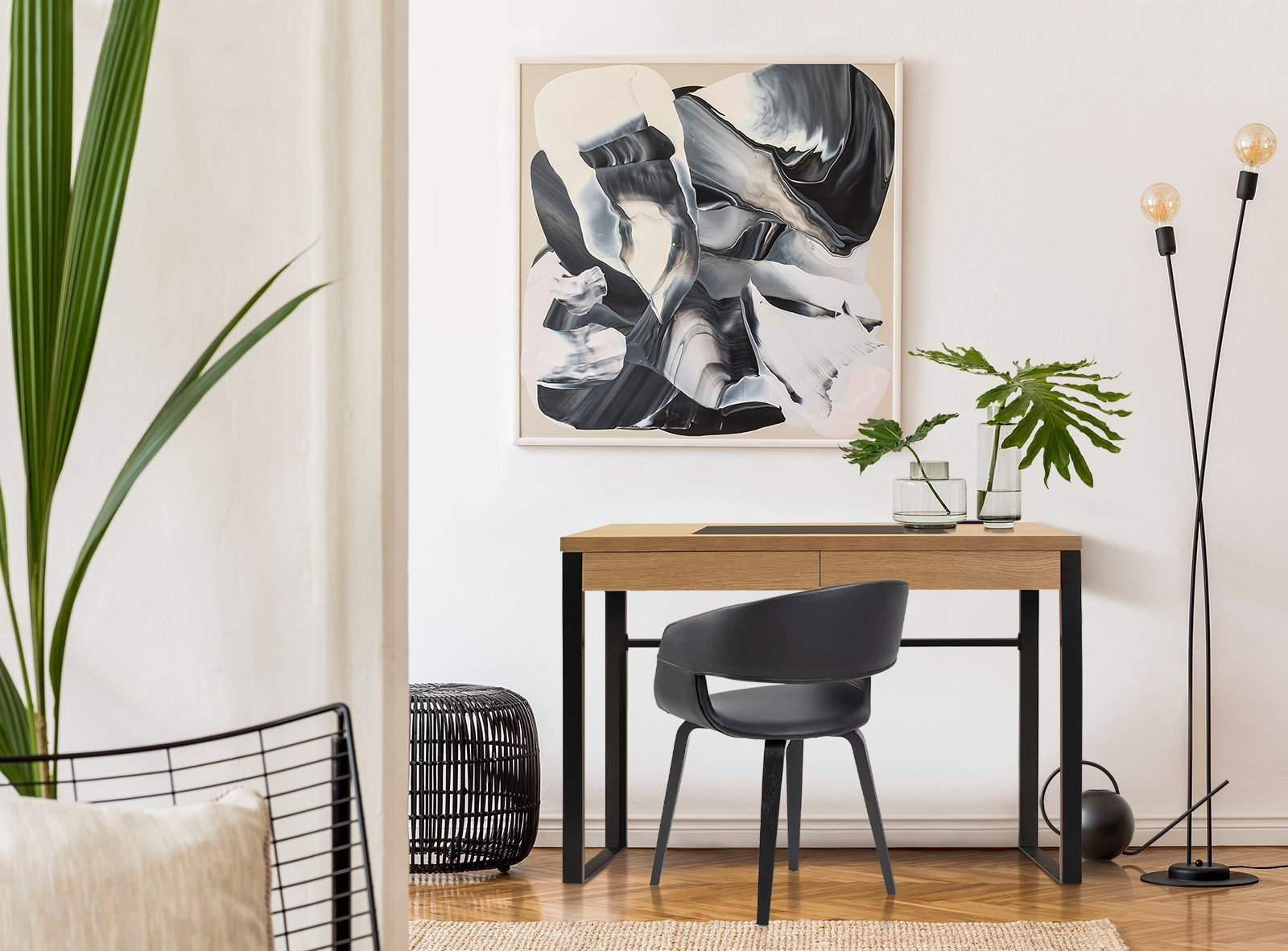 Biurko Dolem Industrial zostało wykonane z płyty MDF z okleiną w kolorze naturalnym. Podstawa mebla została zrobiona z metalu w kolorze czarnym. W środkowej części biurka znajduje się szuflada która pozwala na przechowywanie niezbędnych drobiazgów. Biurko zostało wykonane w stylu Industralnym. Produkt idealnie sprawdzi się w biurze lub gabinecie. Waga biurka: 17 kg. Podkładka na biurku przymocowana na stałe. Maksymalna ilość szt. w kartonie: 1 Wymiary kartonu: 110cm x 59cm x 16cm Wysokość od dna szuflady do podłogi 60 cmCechy produktu