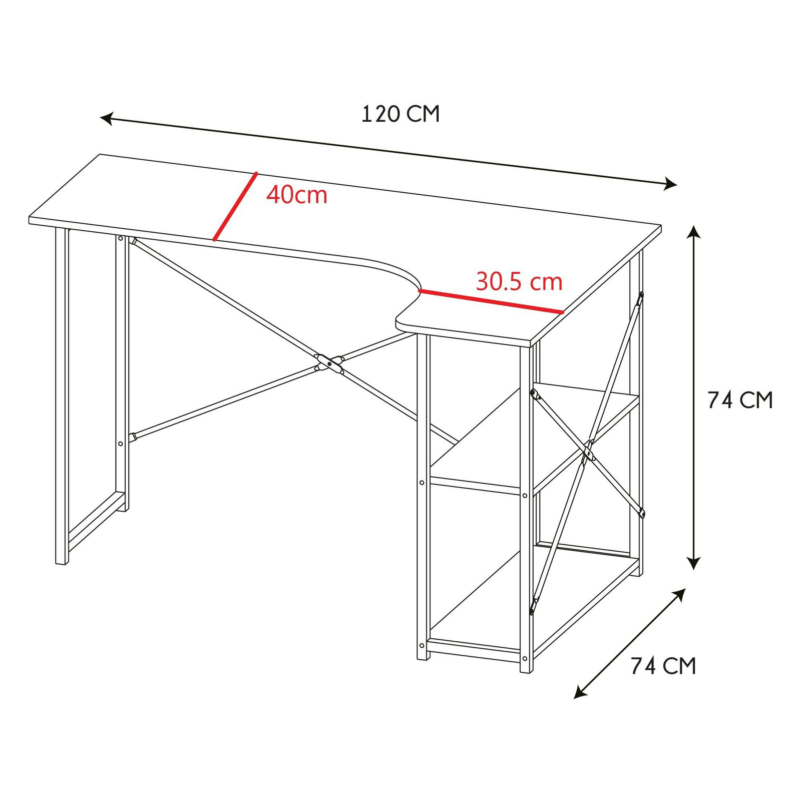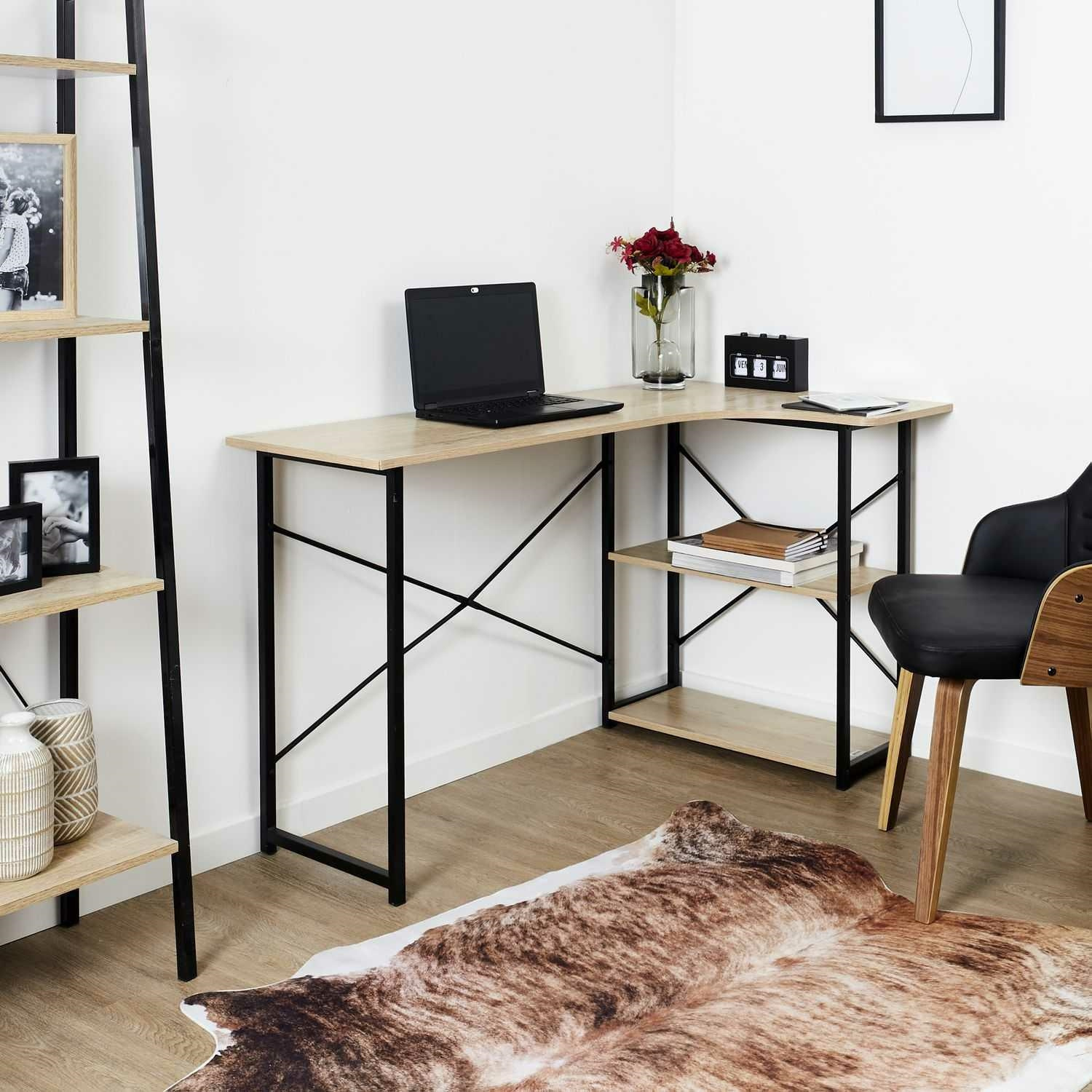 Biuro narożne Stand to mebel w stylu loftowym. Biurko doskonale sprawdzi się dla osób, które cenią sobie zorganizowane miejsce pracy. Biurko wyposażone jest w dwie półki, w których możemy trzymać segregatory lub bloczki kartek samoprzylepnych. Blat biurka w kształcie litery L pomieści nie tylko monitor komputera czy laptop. Biurko Stand doskonale odnajdzie się zarówno w biurze, gabinecie, jak i pokoju młodzieżowym. Biurko charakteryzuje się prostą konstrukcją. Blat oraz półki z laminowanej płyty MDF usytuowane zostały na metalowej, stylowej podstawie, która nadaje całości uroku. Wymiary opakowania: 5x75x123 cm Waga: 15kgCechy produktu