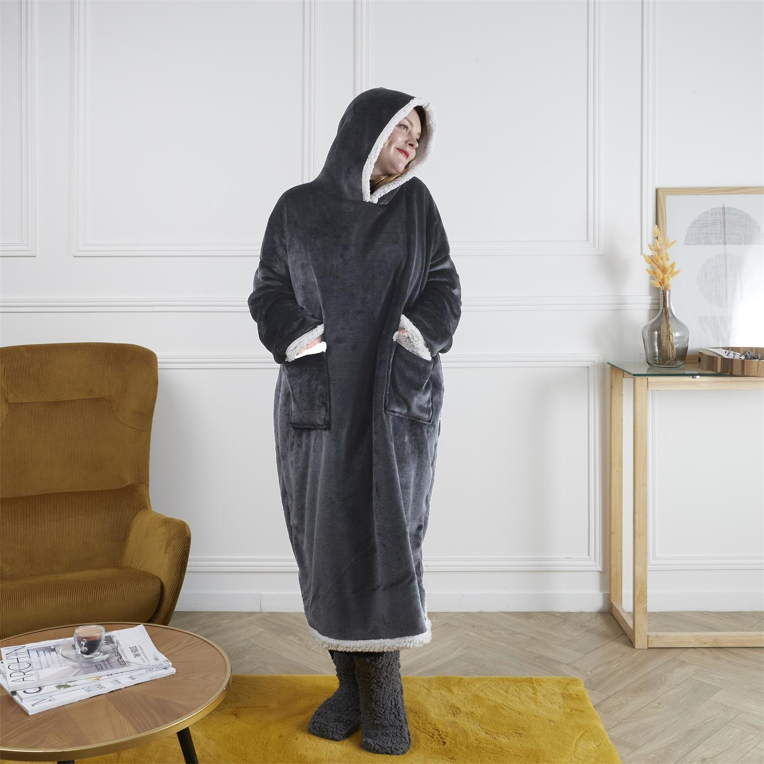 Długa, ocieplana bluza snuddie sprawdzi się podczas długich wieczorów. Wykonana z miękkiej tkaniny będzie idealna na wieczór filmowy lub z książką na fotelu. Materiał 100% poliester. Należy prać w temp. max 30. Nie prasować. Gramatura materiału: 320g/m2. Rozmiar uniwersalnyCechy produktu
