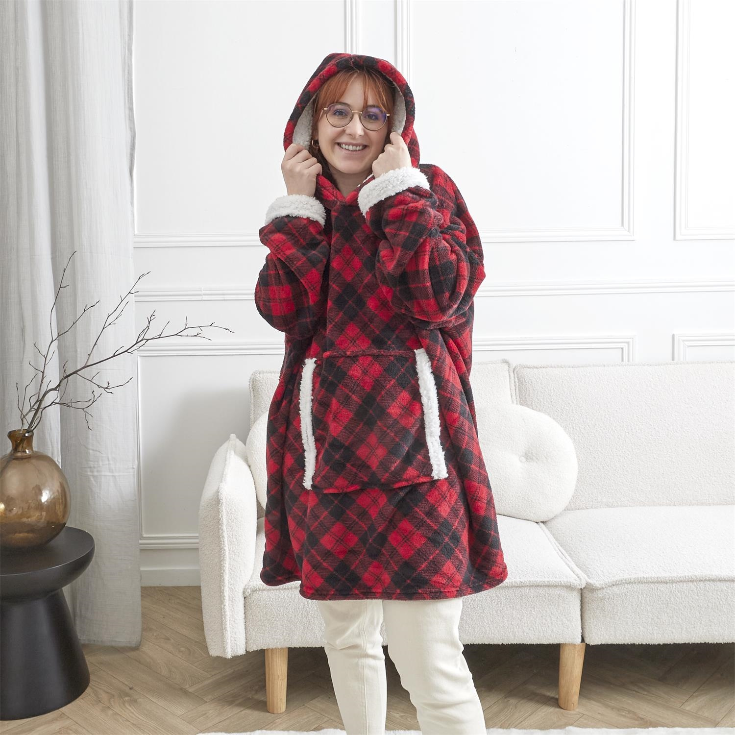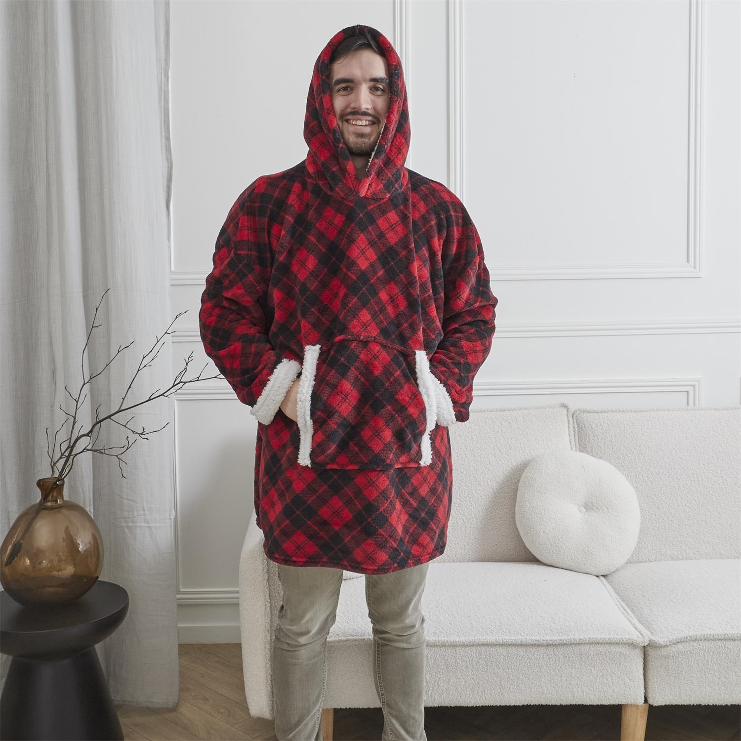 Długa bluza sherpa to idealne nakrycie na długie, zimowe wieczory. Bluza snuddie wyposażona została w kaptur oraz kieszeń z przodu. Bardzo miły i ciepły w dotyku materiał gwarantuje długie komfortowe wieczory filmowe. Prać w temp max 30 stopni. Nie prasować. Gramatura tkaniny 240g/m2 tkanina 100% poliesterCechy produktu