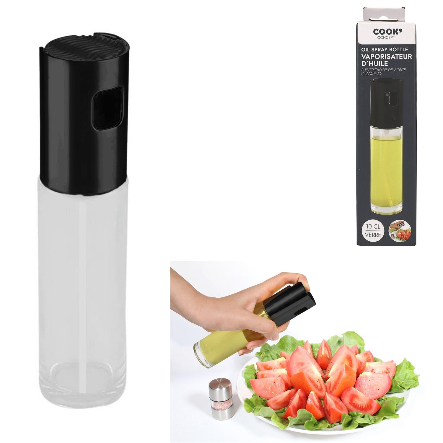 Szklany dozwonik do oliwy pozwoli nam dawkować idealną ilośc oleju lub oliwy. Dzięki rozproszonemu strumieniowi, oliwa rozprowadzana jest równomiernie zarówno na patelni jak i na sałatce. Dozwonik o pojemności 100ml. Materiał: szkło i dozownik z tworzywa sztucznego.Cechy produktu