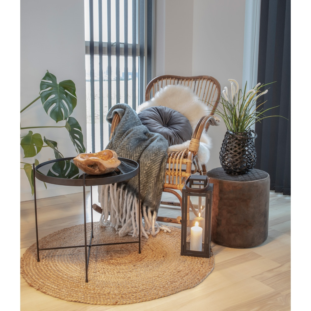 - Jutowy dywan Bombay to dodatek w stylu boho o ciekawym naturalnym splocie, który ociepli każde wnętrze. Dywan z naturalnej juty o średnicy 90 cm pozwoli stworzyć przytulny kąt przy sofie lub łóżku. Niepowtarzalny wzór dywanu sprawia, że jest on wyjątkowy