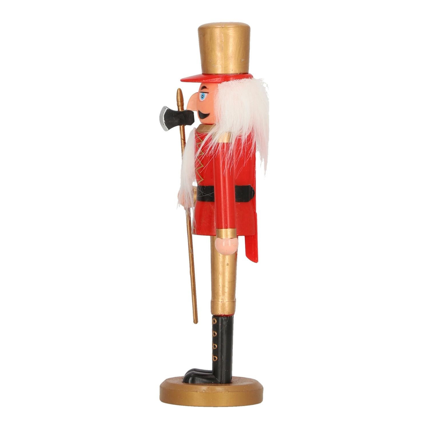 Dekoracja dziadek do orzechów w w czerwono złotych barwach świąt to hit każdych świąt bożego narodzenia. Sympatyczny żołnierz o puchatych białych włosach skradnie serce domowników. Świąteczny dziadek do orzechów dopełni świąteczną aranżację. Duży, bo aż 28-centymetrowy, dziadek został zrobiony ze sztucznego tworzywa, dzięki czemu jest wytrzymalszy od jego drewnianych odpowiedników. Dziadek posiada okrągłą podstawkę, dzięki której stoi stabilnie, więc śmiało możemy nim ozdobić stół na świąteczny obiad lub kominek.