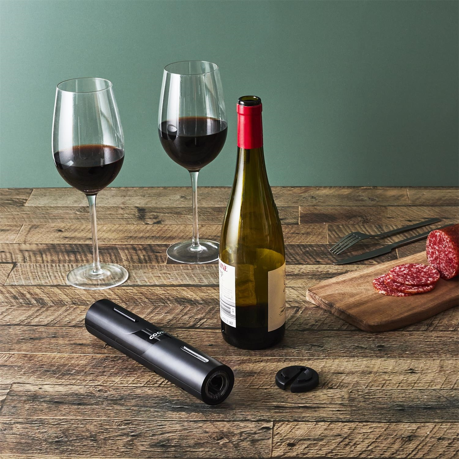 Elektryczny otwieracz do butelek z korkiem, sprawdzi się na każdym spotkaniu podczas którego takie butelk trzeba otworzyć. Otwieracz bardzo ułątwia twarcie butelek i minimalizuje uszkodzenie korka, czy wepchnięcie go do środka butelki. Dzięki elektrycznemu mechanizmowi otwieranie jest szybkie i nie trzeba się martwić, że rozlejemy zawartość butelki. Otwieracz wykonany z plastiku z aluminiowymi elemntami. Otwieracz na baterie (brak w zestawie)Cechy produktu