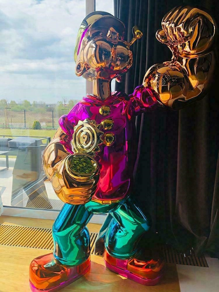 - Figura Popeya, najsłynniejszego marynarza. Prawdziwa gratka dla każdego fana tego dzielnego bohatera. Popeye imponuje i zachwyca nie tylko swoimi żywymi kolorami, lecz przede wszystkim wymiarami. Ma 185 cm wysokości oraz 110 cm szerokości. W całości wykon