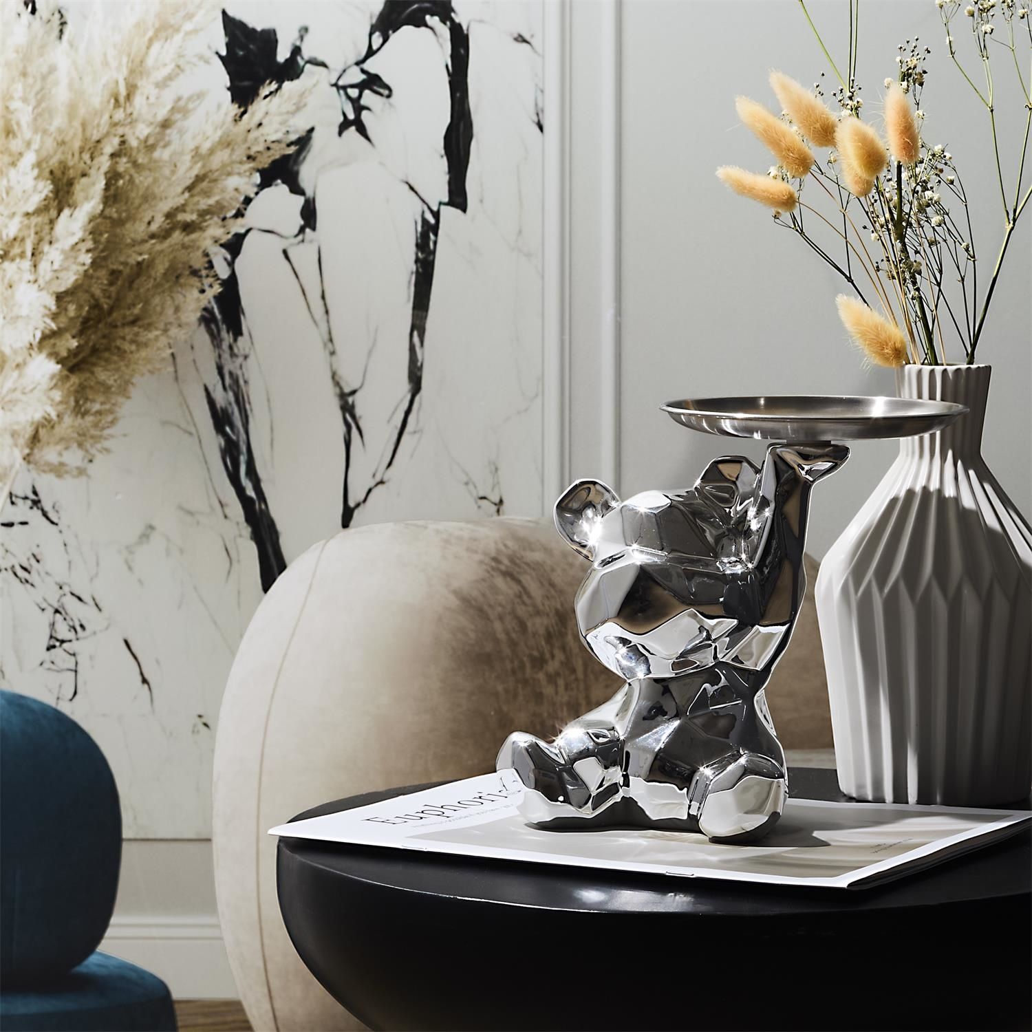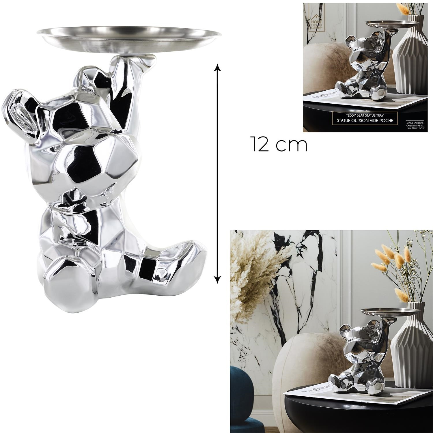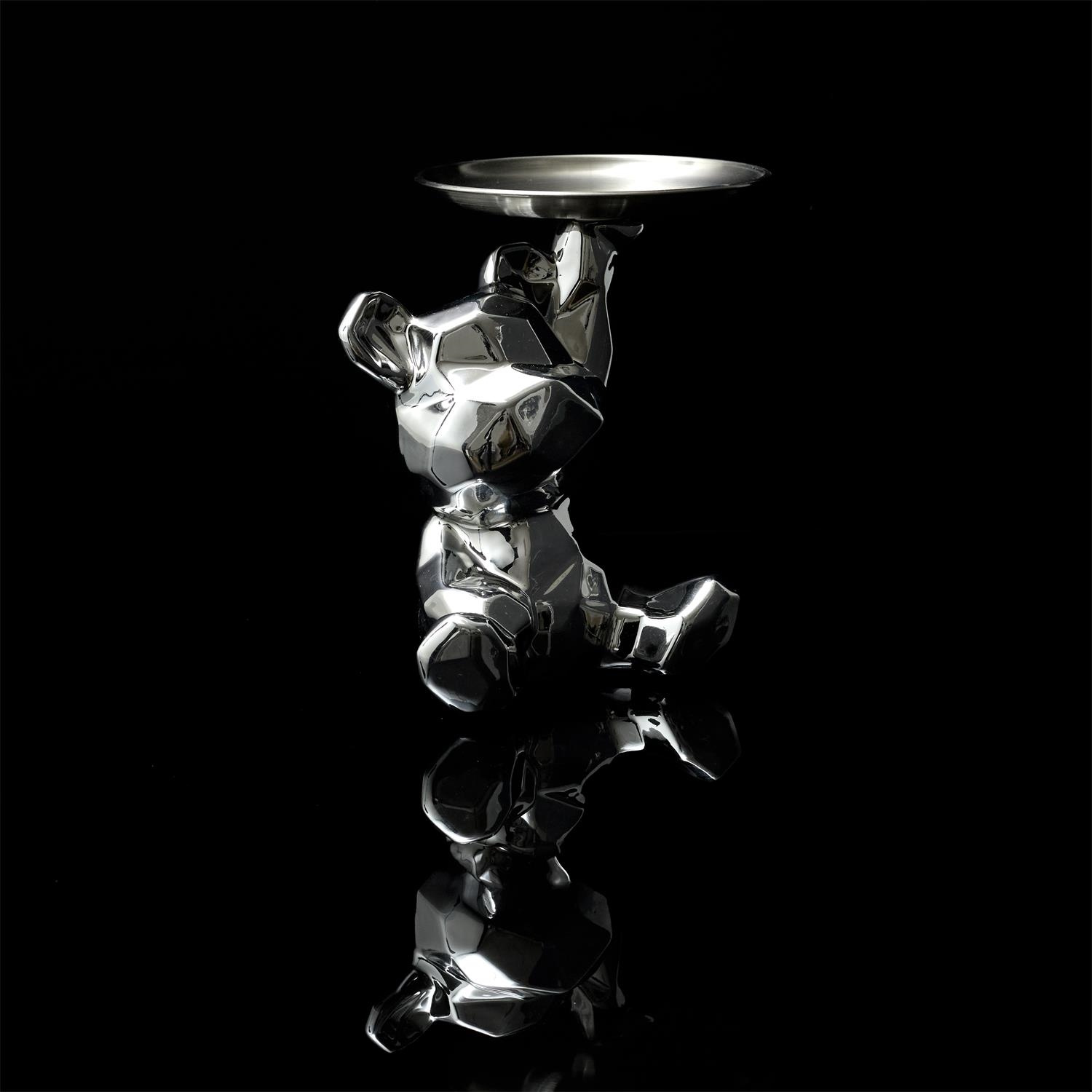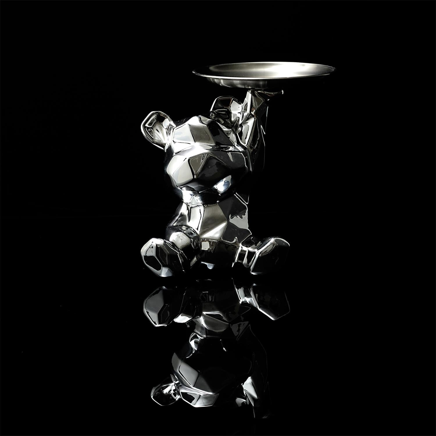 Figurka Miś origami z srebrną tacą srebrny