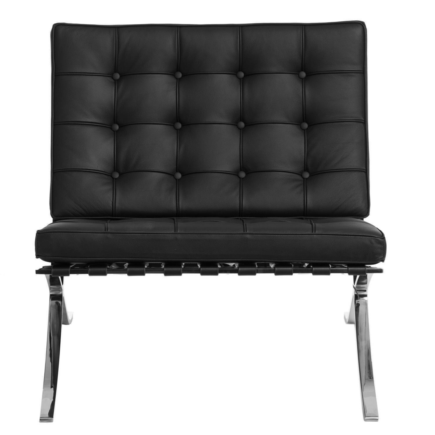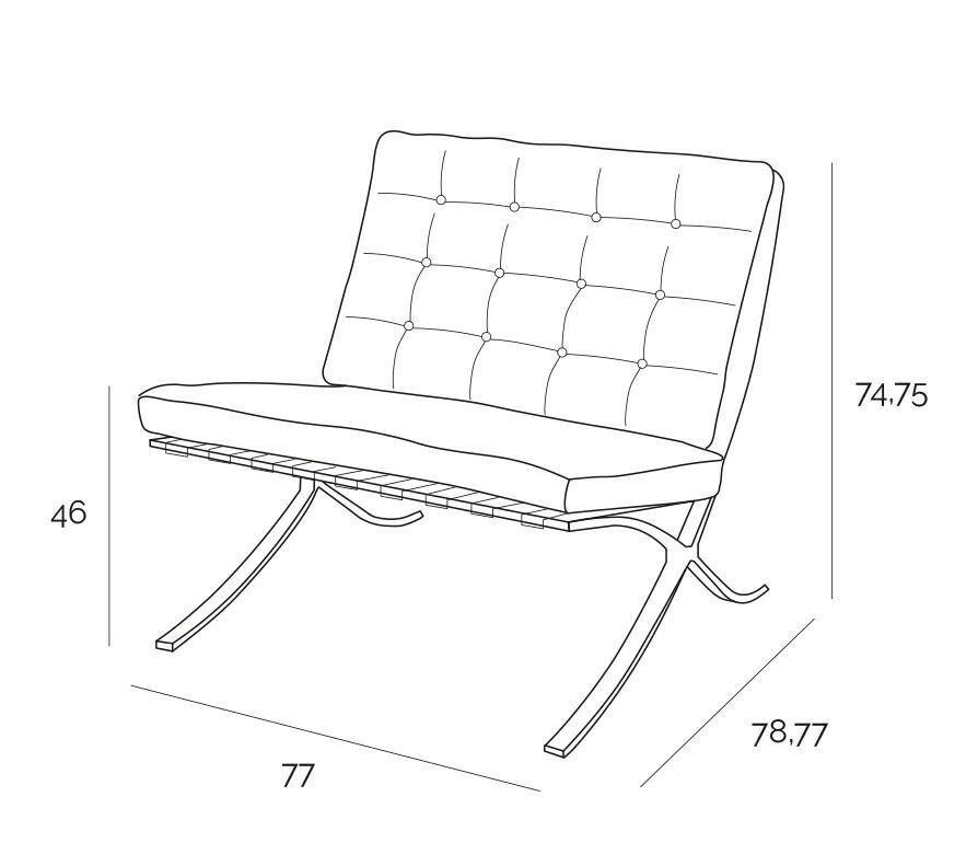 Fotel BA1 jestinspirowany projektem fotela Barcelona. Barcelona to zaprojektowany w 1929 roku fotel, który powstał na zamówienie i stanął w niemieckim pawilonie na wystawie w Barcelonie.,Charakterystycznie powyginana w kształt litery "X" chromowana podstawa oraz pikowana w kwadraty skóra ekologiczna to najbardziej charakterystyczne cechy tego fotela. Uzupełnieniem tego fotela jest Barcelona Ottoman i Barcelona,stolik.,Fotel wykonany całkowicie ze skóry ekologicznej.