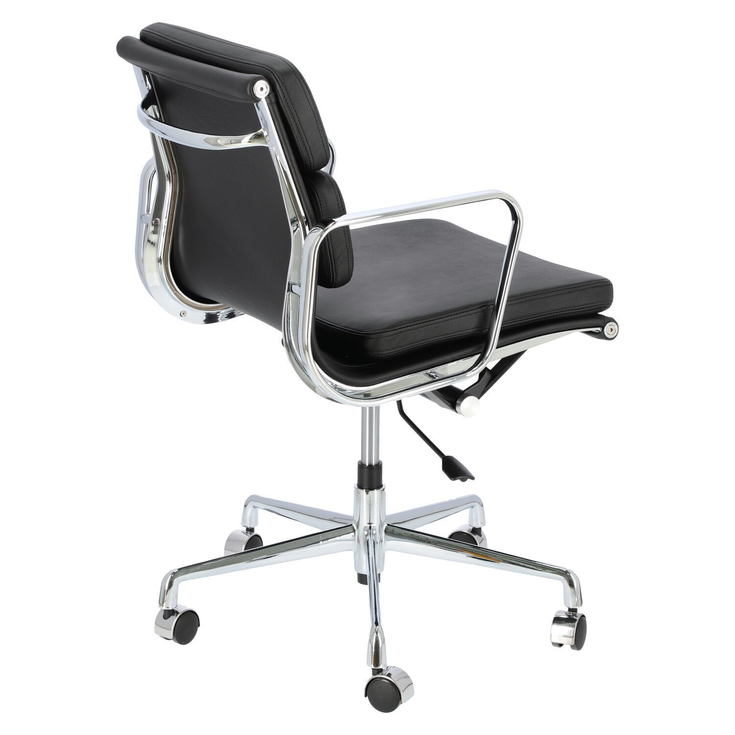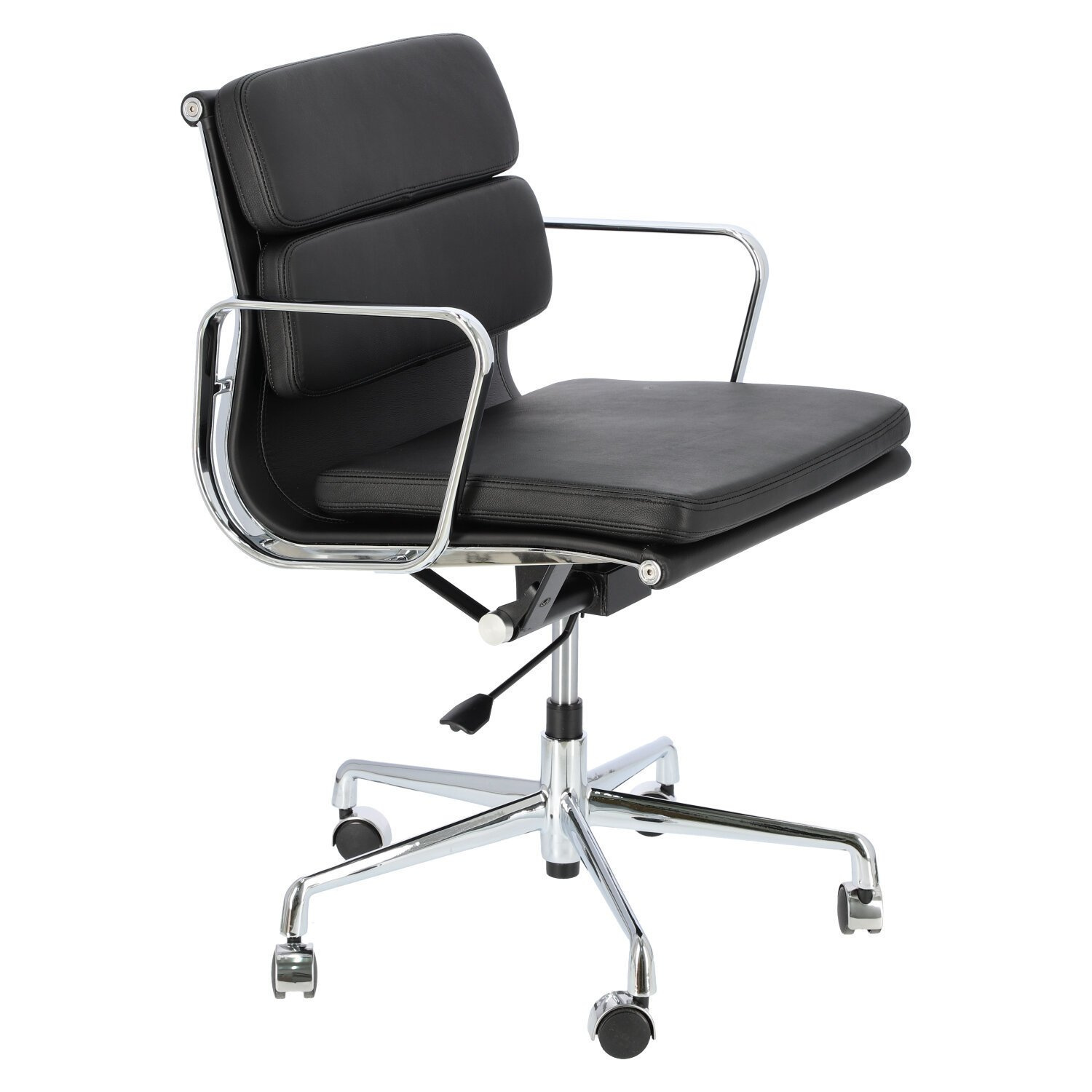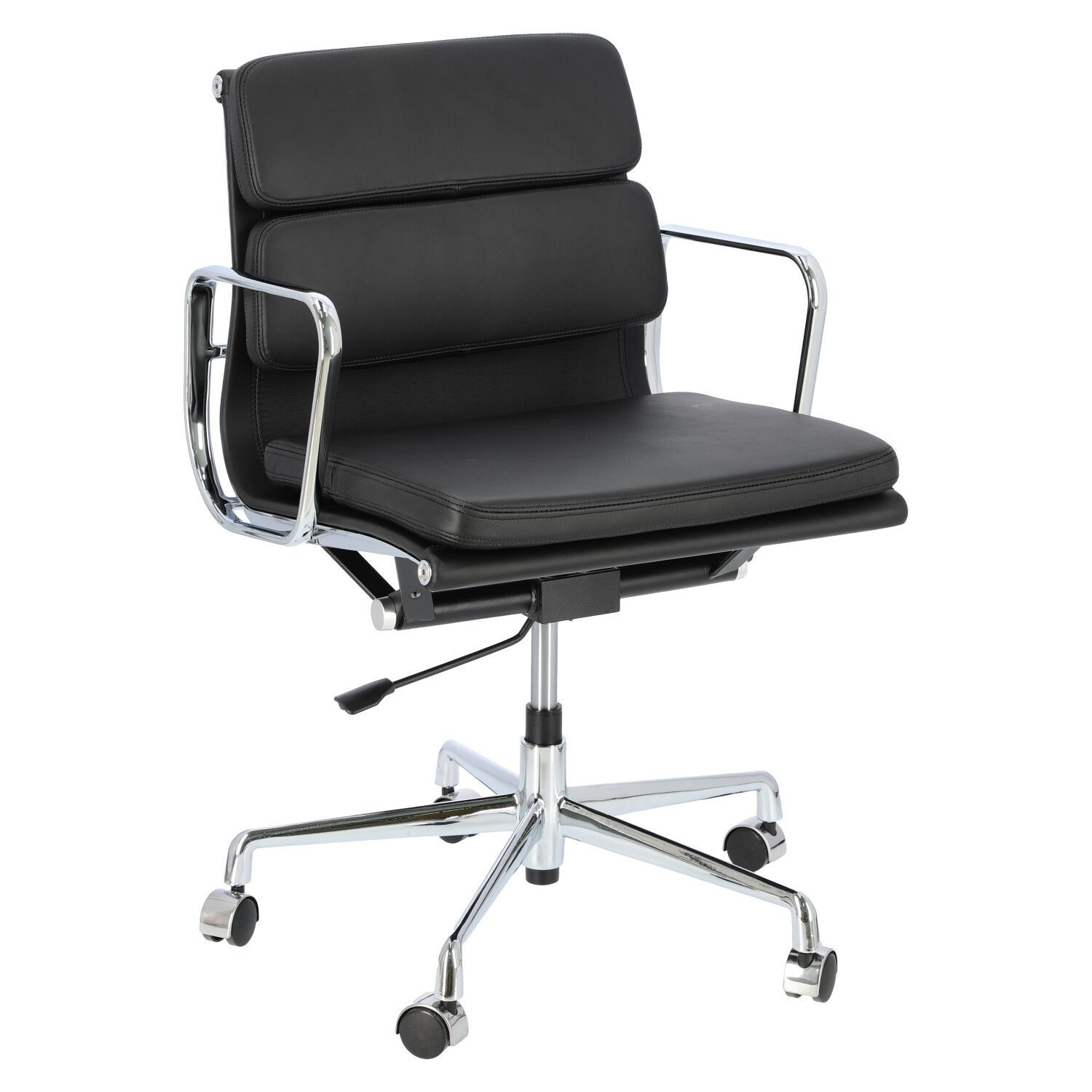 - Krzesło jest bardziej ekskluzywną wersją krzesła inspirowanego EA117. Siedzisko i oparcie zostały wyłożone miękkimi poduszkami zwiększającymi komfort użytkowania. Podstawa na kółkach jest chromowana. Krzesło posiada mechanizm regulacji wysokości oraz koły