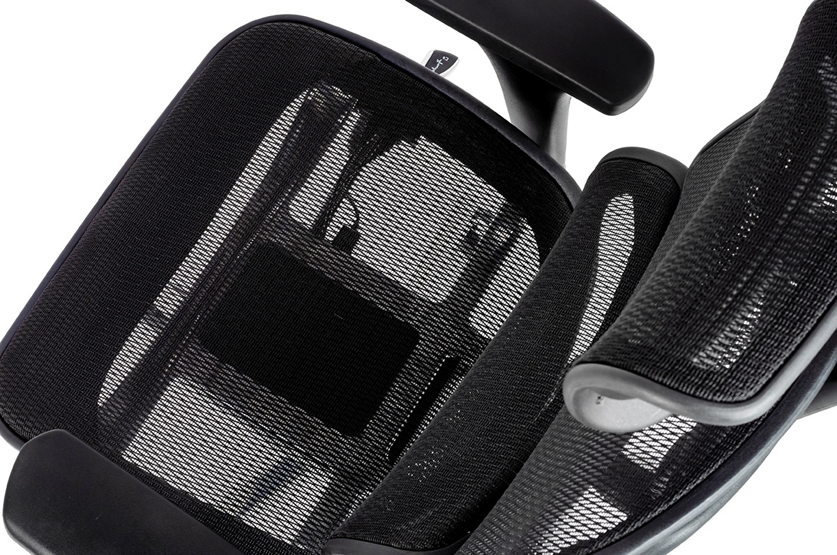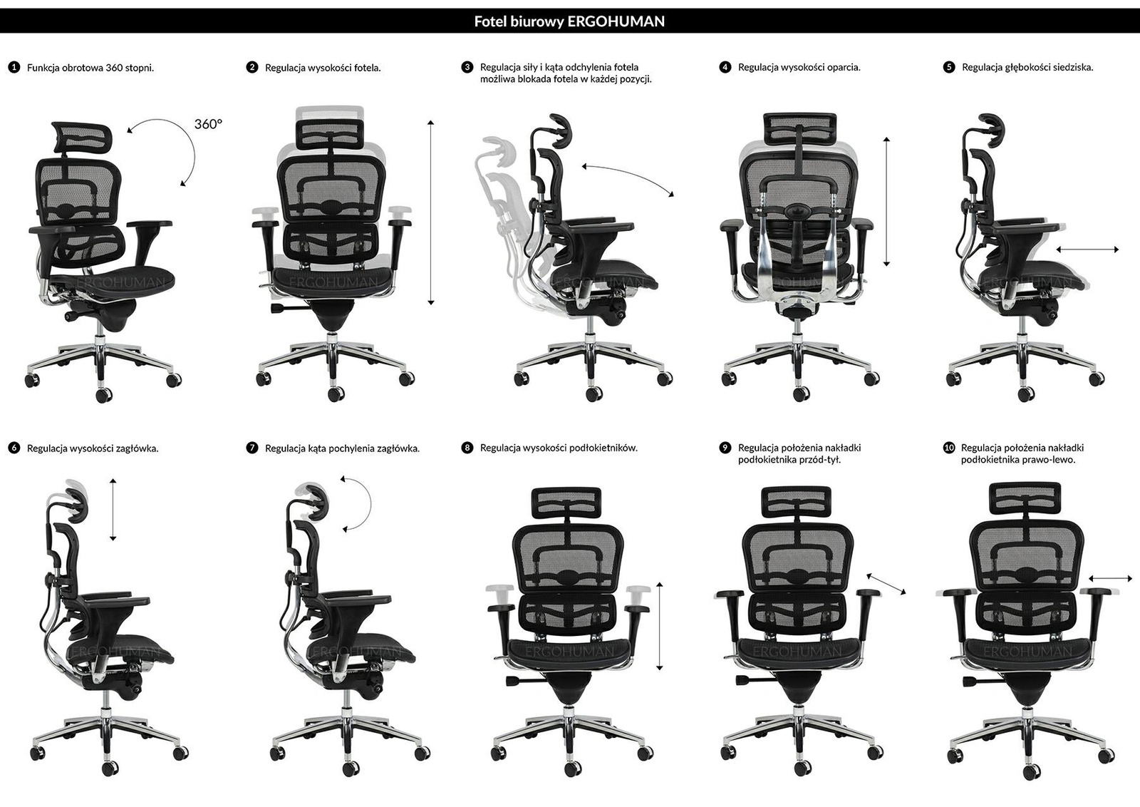 • Fotel biurowy ERGO czarny. Pełen zakres funkcji ergonomicznych i szereg innowacyjnych rozwiązań. Fotel wyposażony jest w mechanizm ruchowy, który umożliwia łączne wychylenie oparcia i siedziska z możliwością blokady w wybranej pozycji. Szeroki, wysoki zag