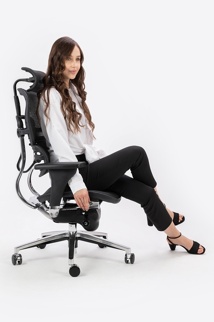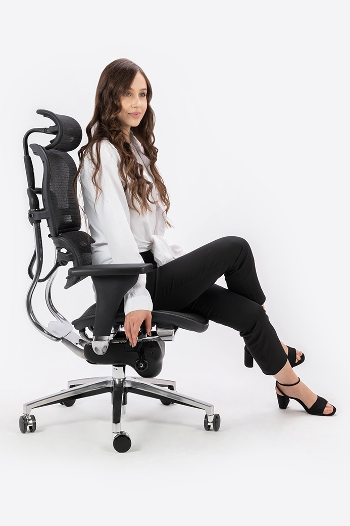 Fotel biurowy ERGO czarny. Pełen zakres funkcji ergonomicznych i szereg innowacyjnych rozwiązań. Fotel wyposażony jest w mechanizm ruchowy, który umożliwia łączne wychylenie oparcia i siedziska z możliwością blokady w wybranej pozycji. Szeroki, wysoki zagłówek zapewnia odpowiednie podparcie głowy podczas pracy i w chwilach relaksu. Fotel posiada certyfikat BIMFA oraz GREENGUARD, świadczy to o najwyższej jakości produktu, niskiej emisyjności, co pomaga utrzymać zdrowsze środowisko w pomieszczeniach zamkniętych, spełni oczekiwania najbardziej wymagających klientów. Wymiary: wys. 112 - 125 cm / szer. 76 cm / gł. 91 cm Wysokość do krawędzi siedziska: 44 - 52 cm Wysokość do podłokietników: 60 - 78 cm Siedzisko: szer. 53 cm / gł. 48 cm Oparcie: wys. 54 cm / szer. 52 cm Podłokietniki: wys. 30 cm / szer. 10 cm / gł. 27,5 cm Podstawa: śr. 74 cm Zagłówek: szer. 32 cm / wys. 14 cm / gł. 9 cm Kółka: szer. 4 cm Wymiary opakowania: 79 cm / 54 cm / 68 cm.