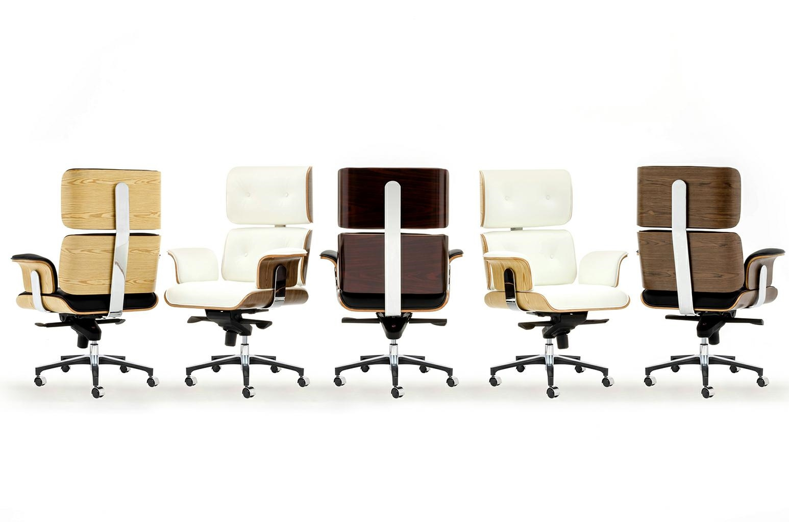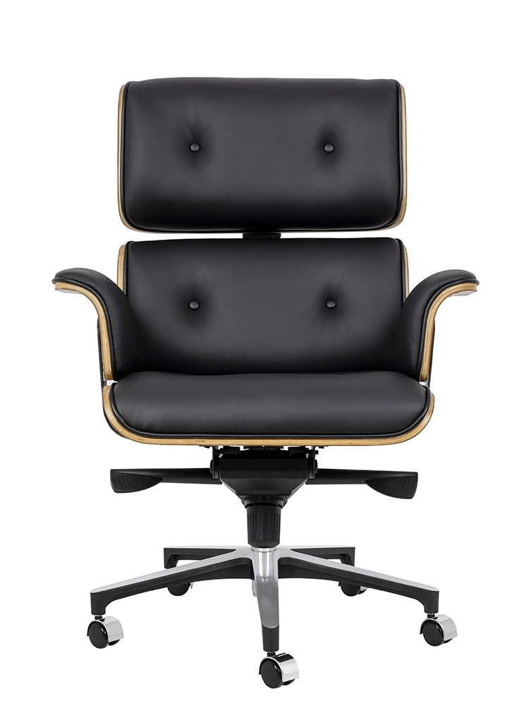 Fotel biurowy LOUNGE BUSINESS czarny - sklejka różana, skóra naturalna, stal polerowana