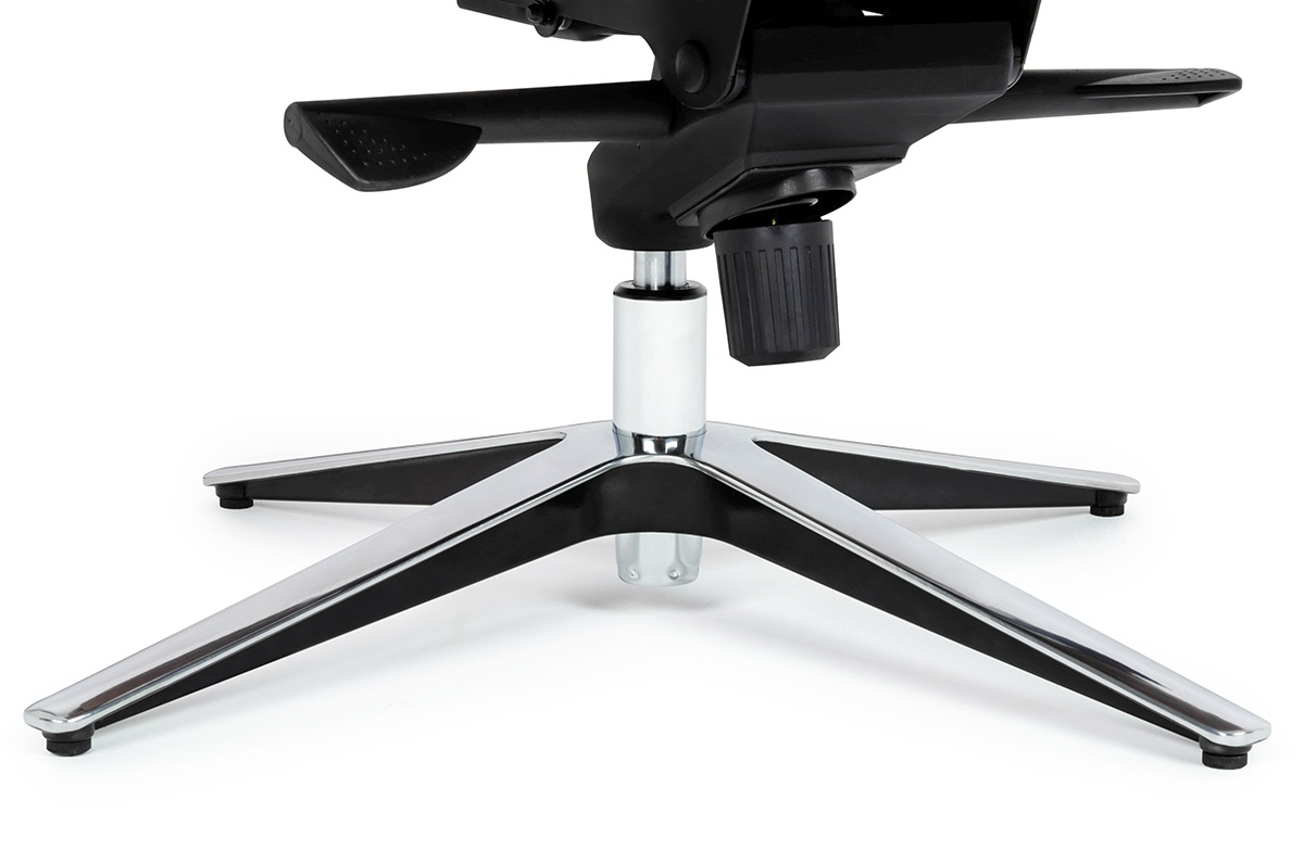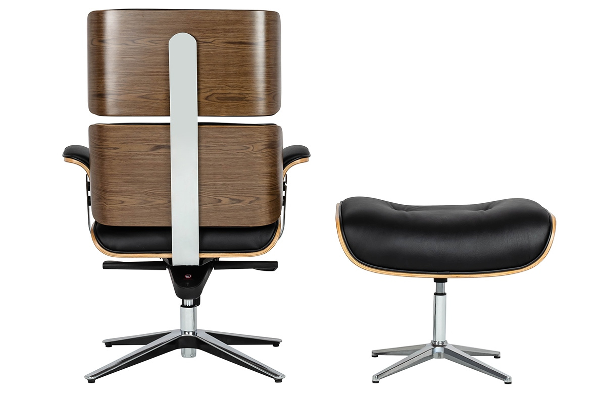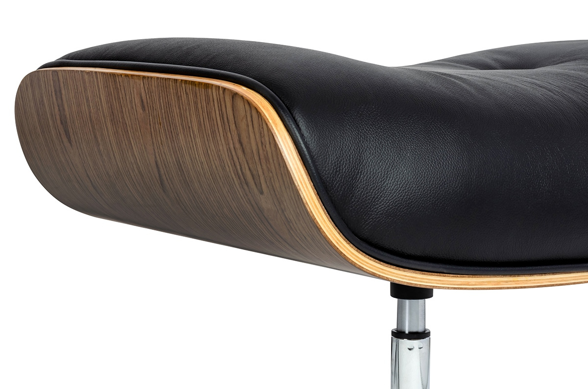 Fotel biurowy LOUNGE BUSINESS czarny z podnóżkiem - sklejka orzech, skóra naturalna, stal polerowana
