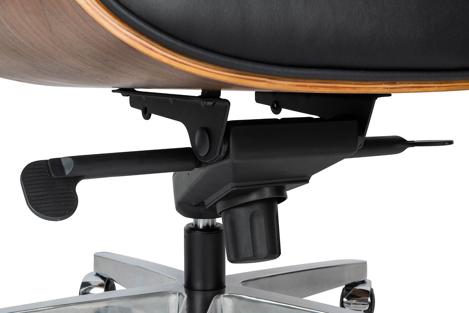 Fotel biurowy LOUNGE GUBERNATOR BIG XL czarny - sklejka orzech, skóra naturalna, stal polerowana
