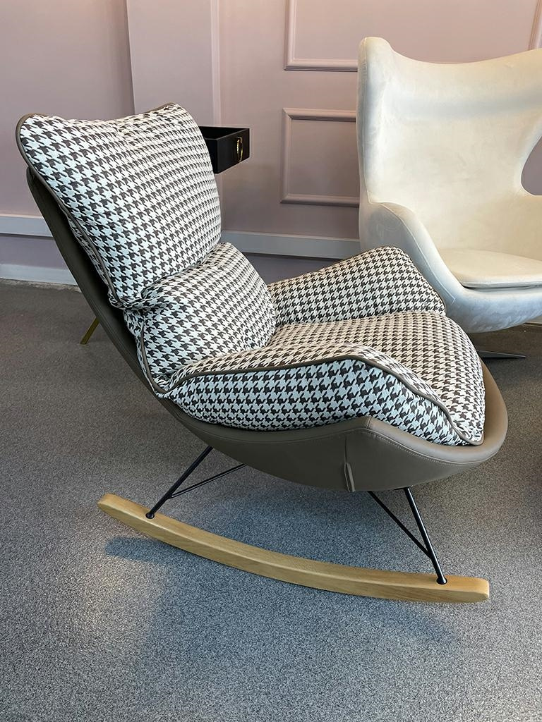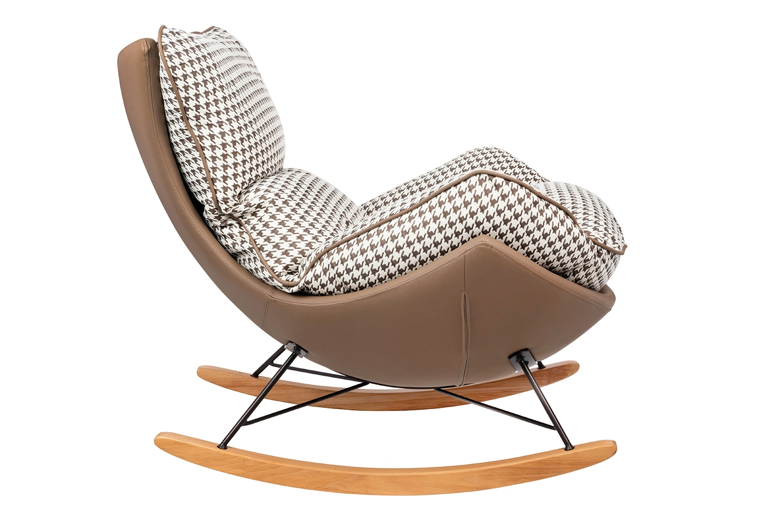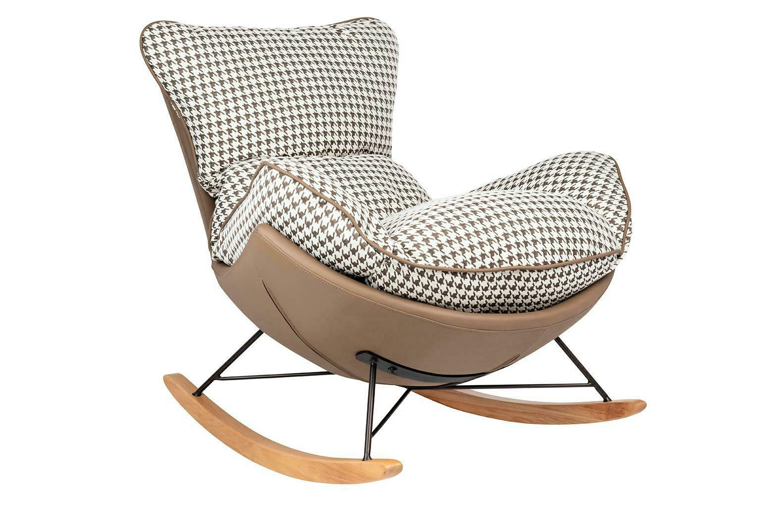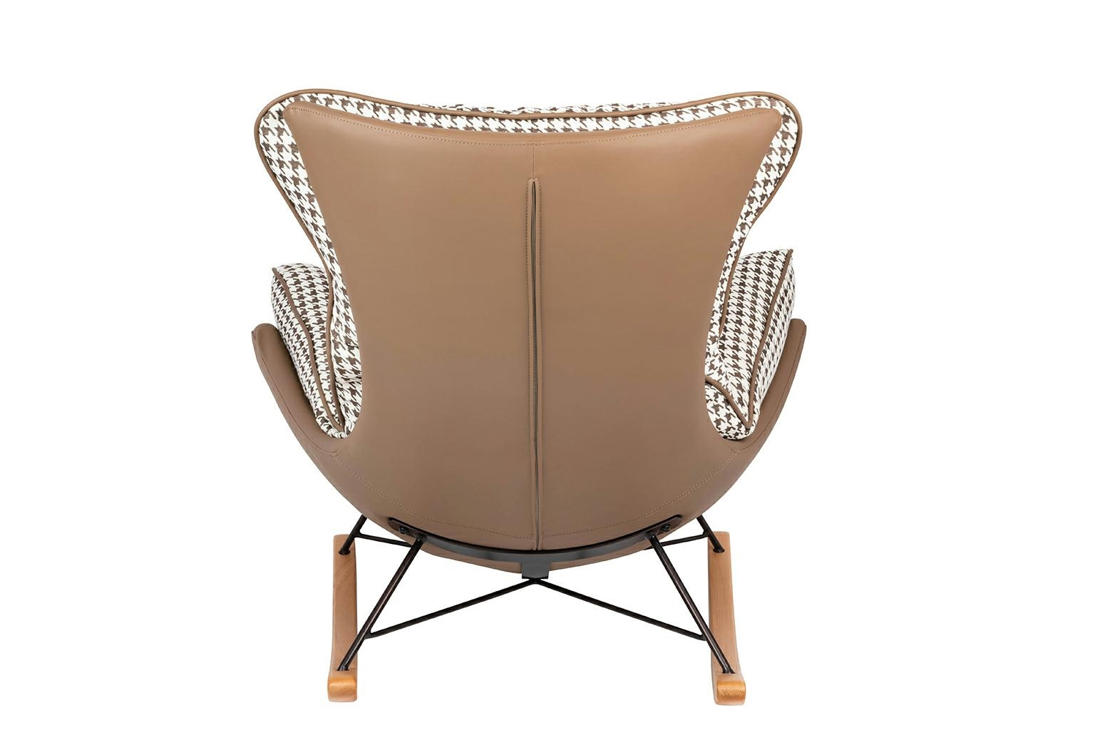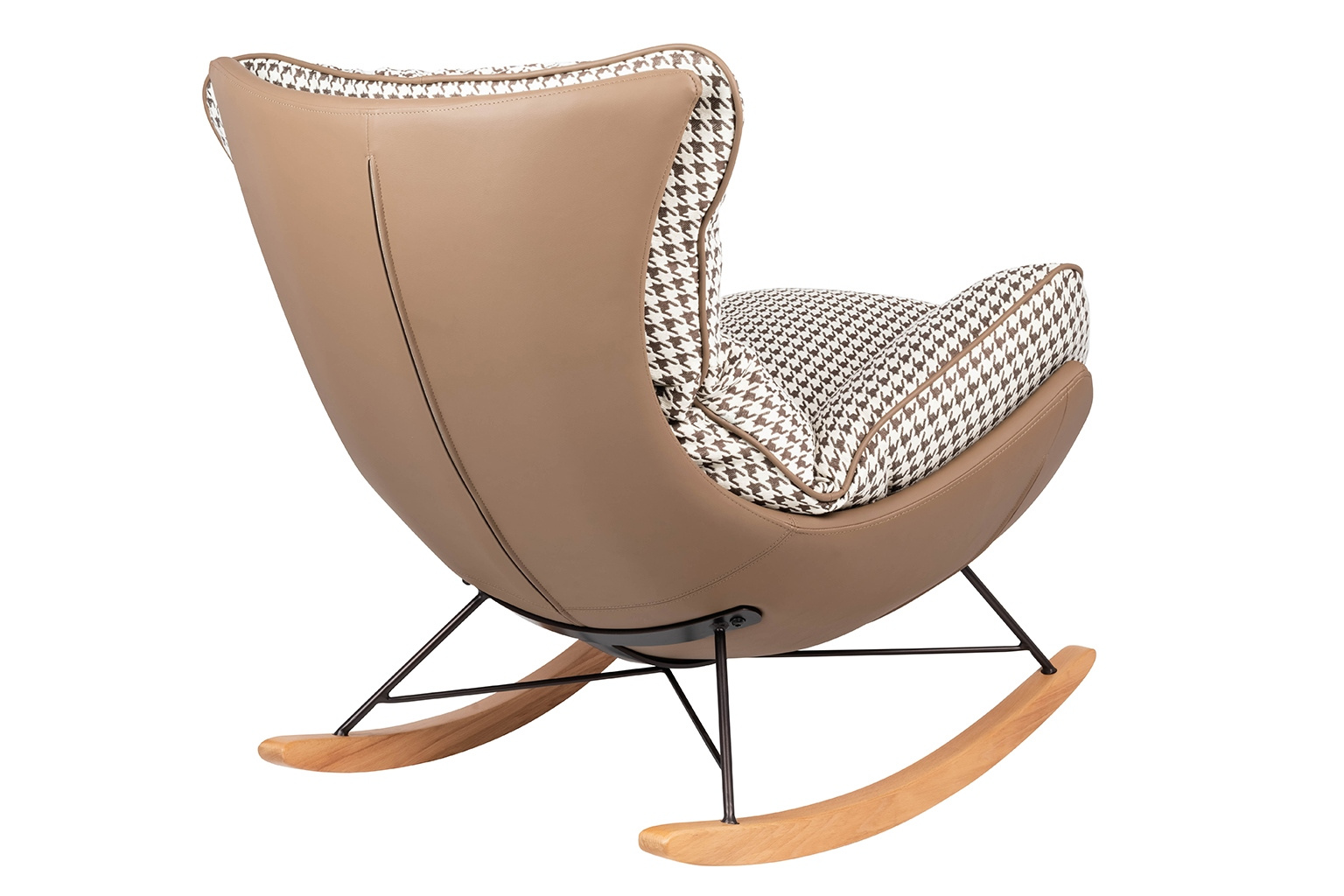 Fotel bujany OTILIA brązowa pepitka - drewniane płozy, ekoskóra