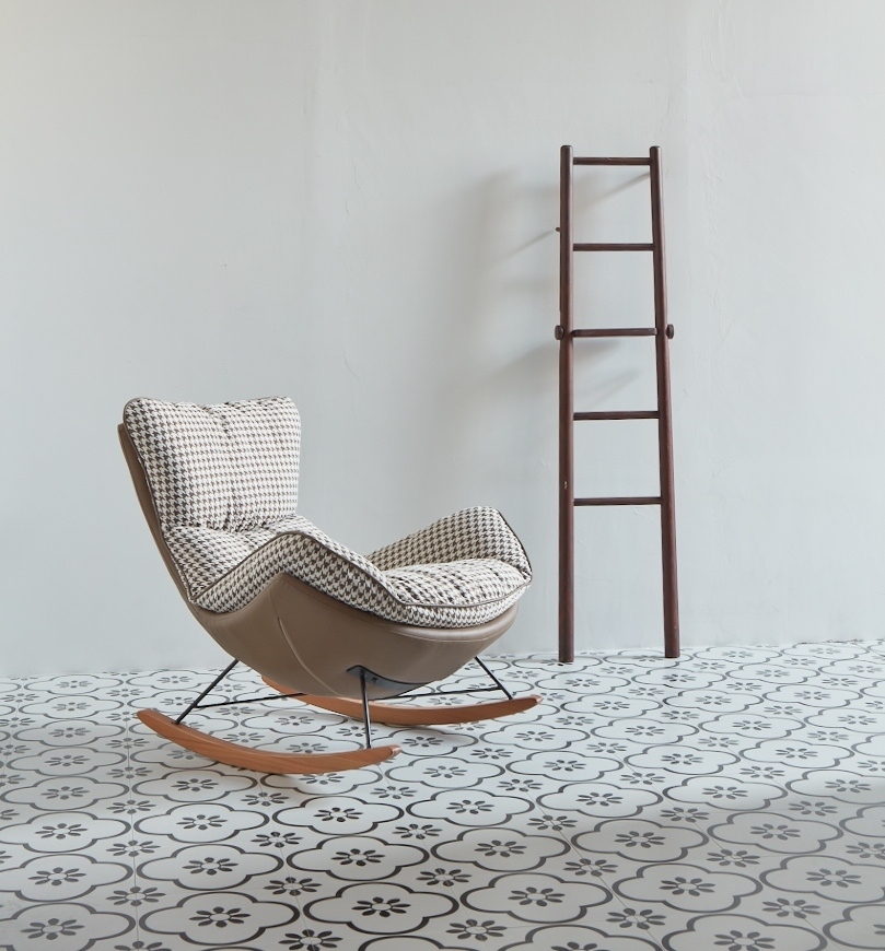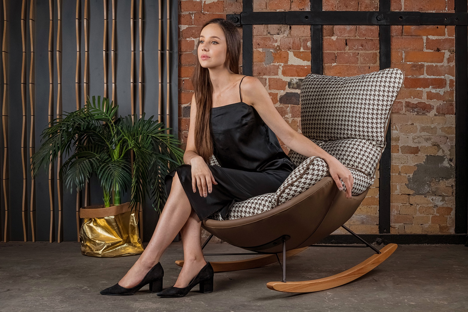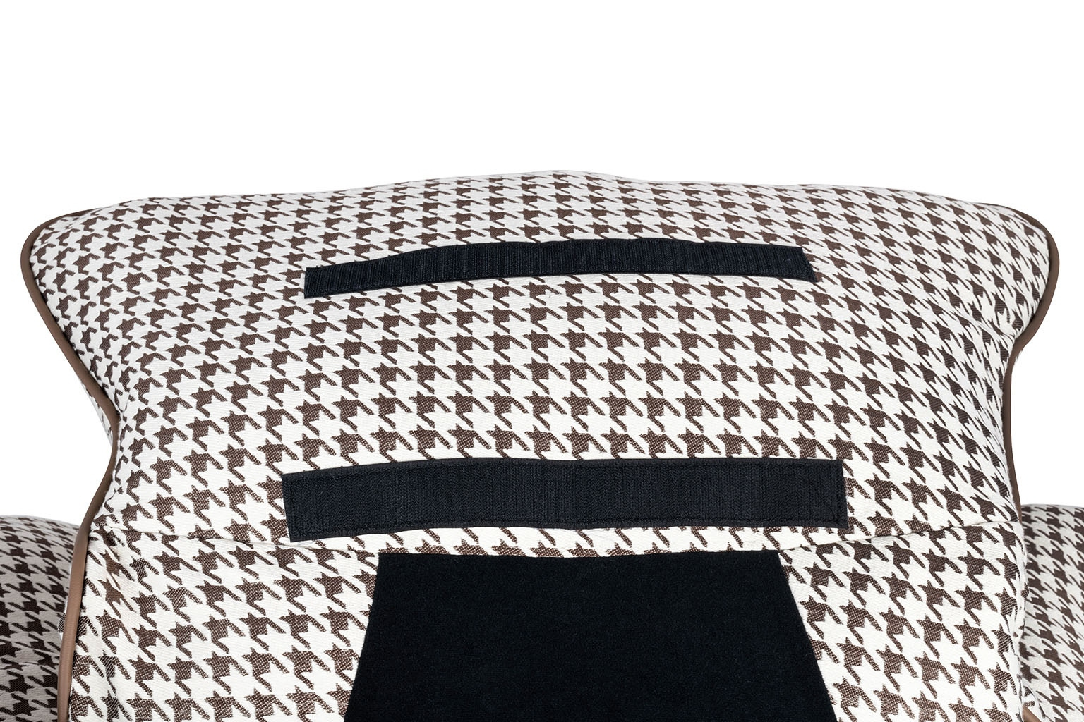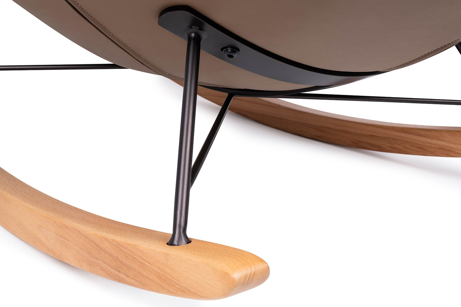 Fotel bujany OTILIA brązowa pepitka - drewniane płozy, ekoskóra