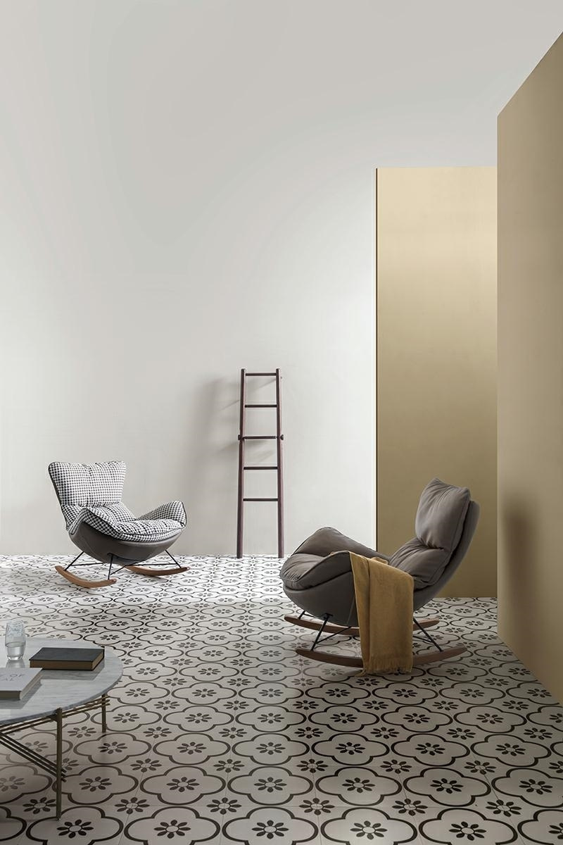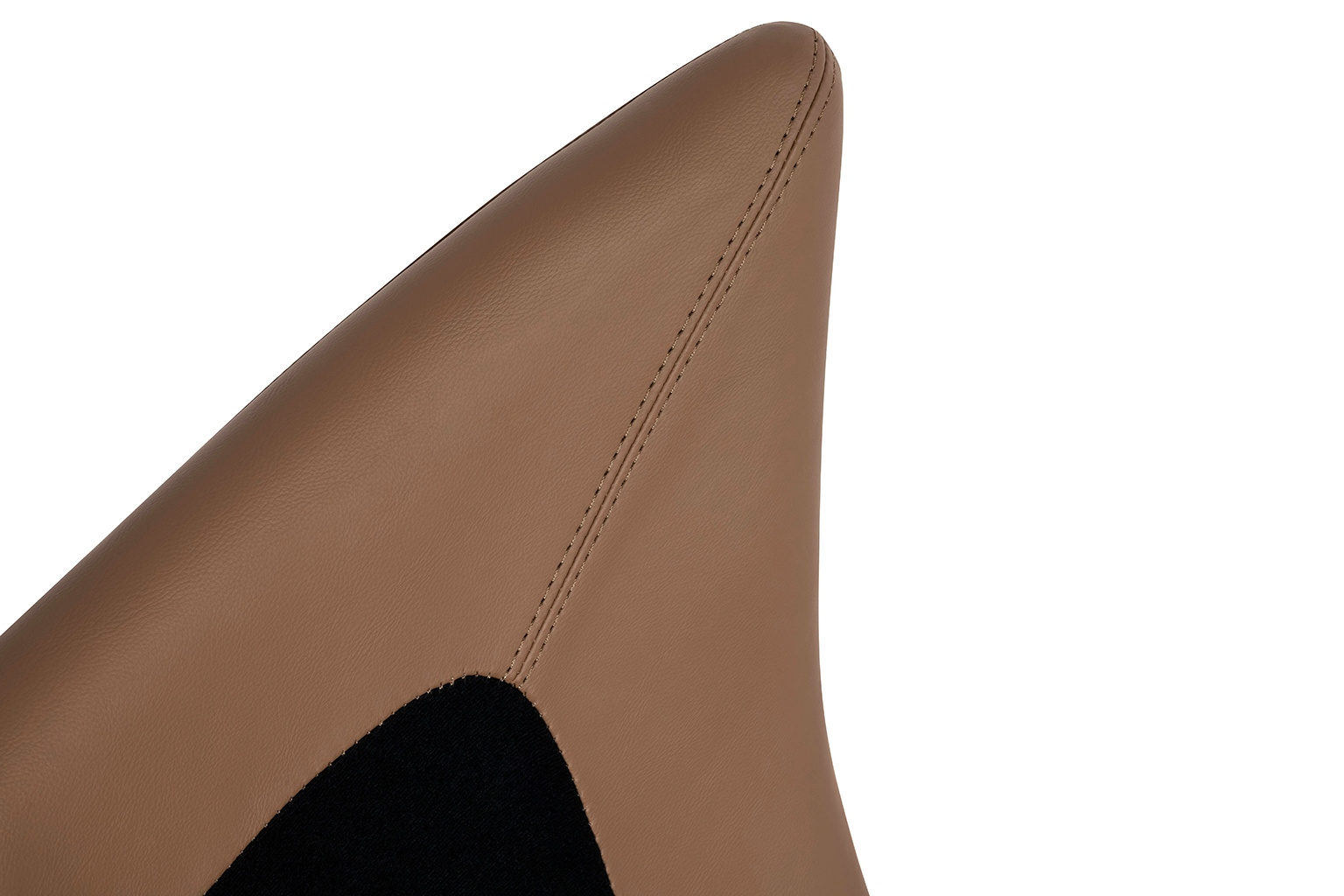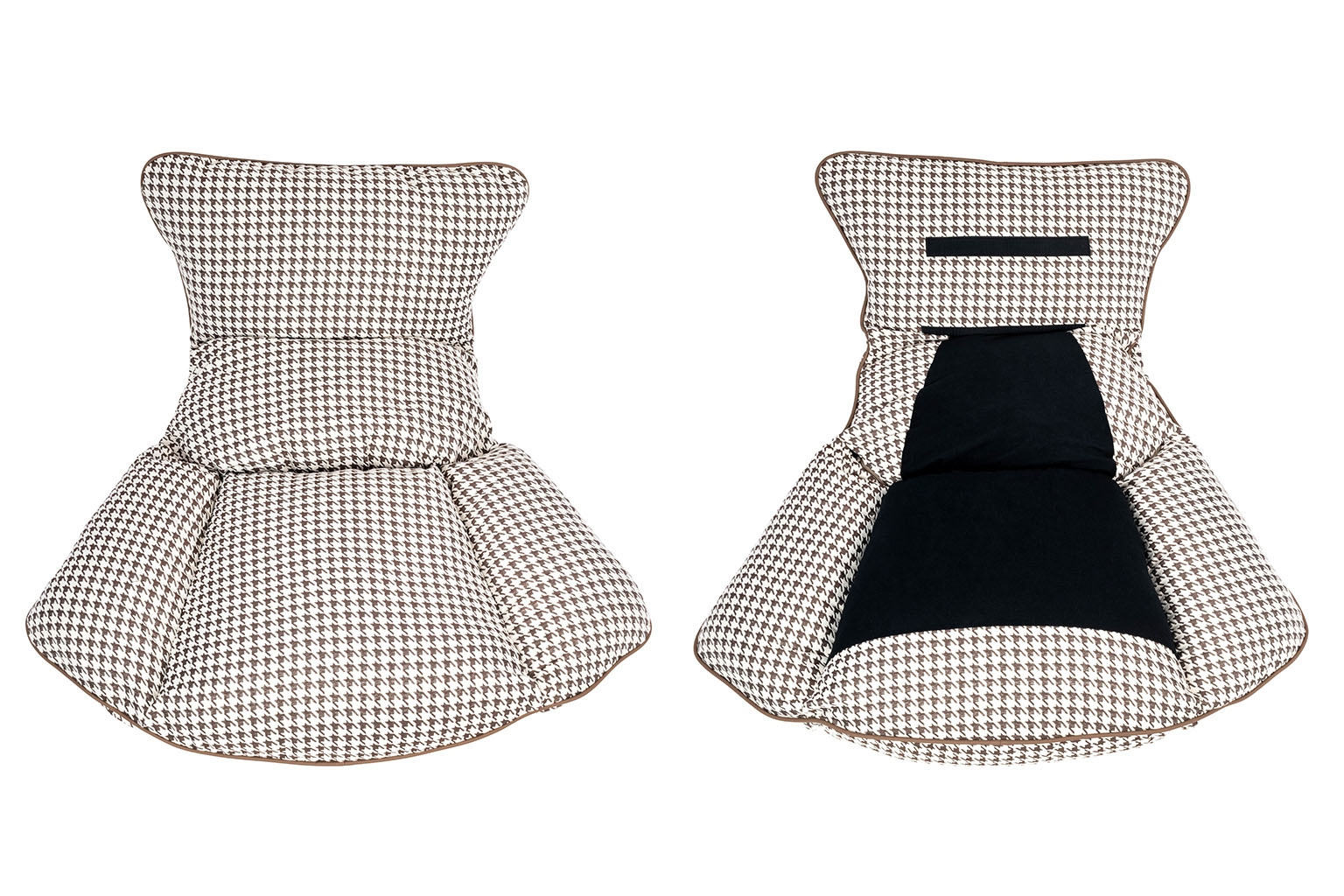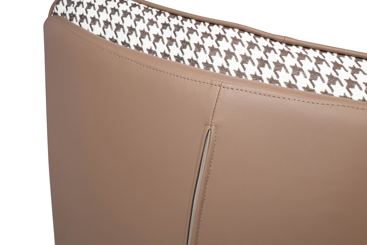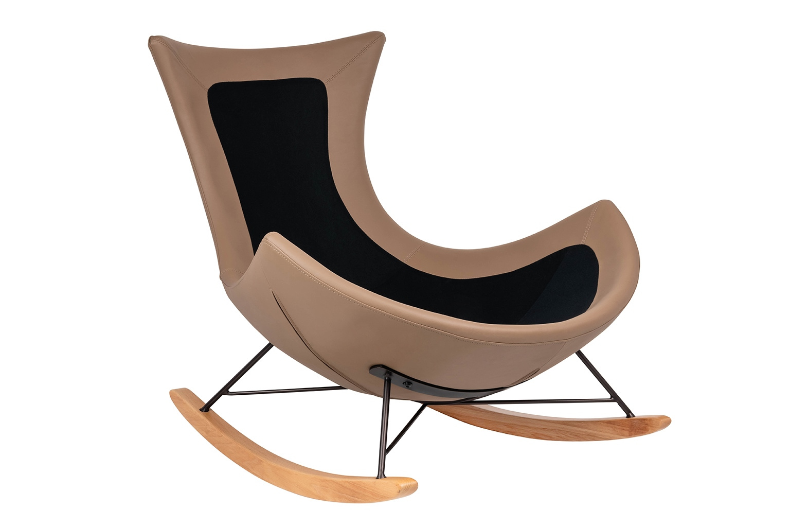 Fotel bujany OTILIA brązowa pepitka - drewniane płozy, ekoskóra
