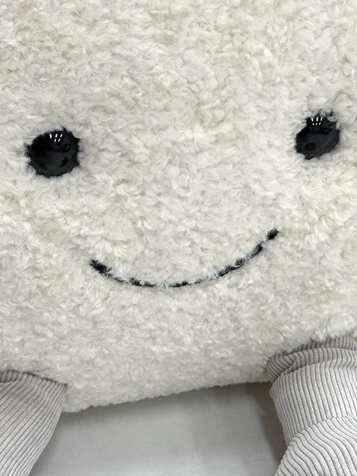 Fotel dziecięcy MOON biały. Uroczy i komfortowy fotel w kształcie księżyca, zaprojektowany z myślą o dziecięcych pokojach i przestrzeniach wypoczynkowych. Wykonany z przyjemnego w dotyku, miękkiego materiału o fakturze baranka, zapewnia wyjątkowy komfort użytkowania. Unikalny design z uśmiechniętą buzią i nóżkami dodaje przyjaznego, bajkowego charakteru. Fotel posiada również dopasowaną poduszkę, co dodatkowo zwiększa wygodę podczas siedzenia. Fotel Moon to niezwykły dodatek, który zachwyca nie tylko swoim uroczym wyglądem, ale także niezrównaną wygodą – idealny do relaksu i stworzenia przytulnego kącika w każdym wnętrzu. Wymiary: wys. 148 cm / szer. 150 cm / gł. 71 cm Wysokość do krawędzi siedziska: 43 cm.Cechy produktu