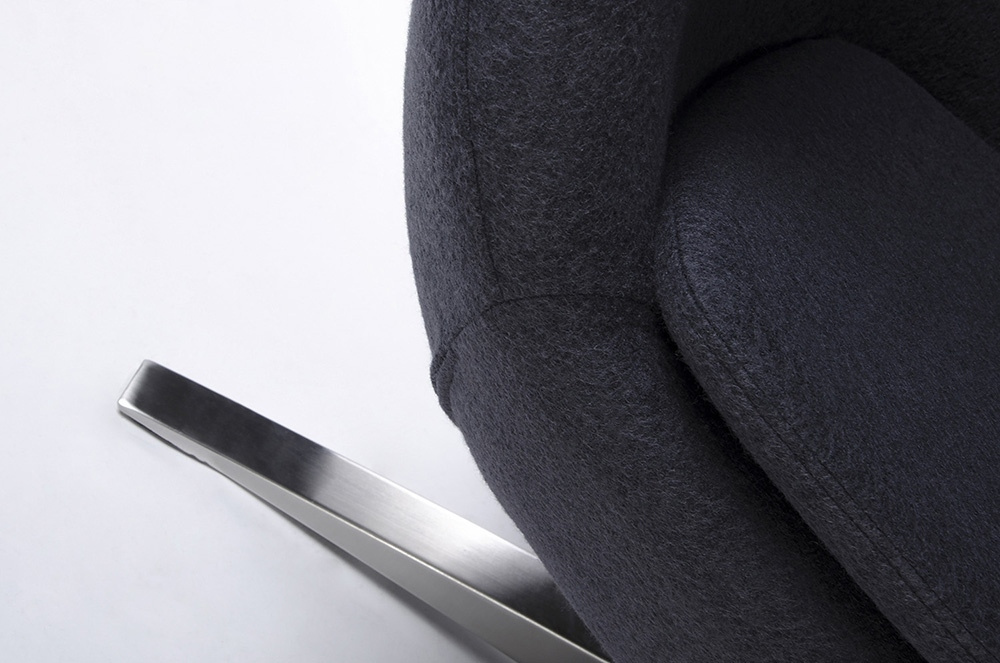 • Fotel EGG SZEROKI kształtem nawiązuje do jednego z najbardziej znanych projektów. Wyposażony jest w mechanizm obrotowy z funkcją bujania. Dodatkowo fotel można zablokować w pozycji odchylonej lub pionowej. Ciekawym elementem, jest dekoracyjny suwak na ple