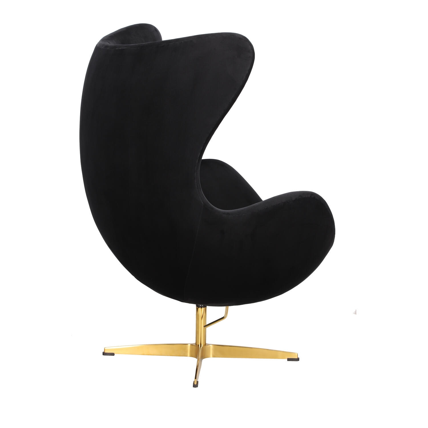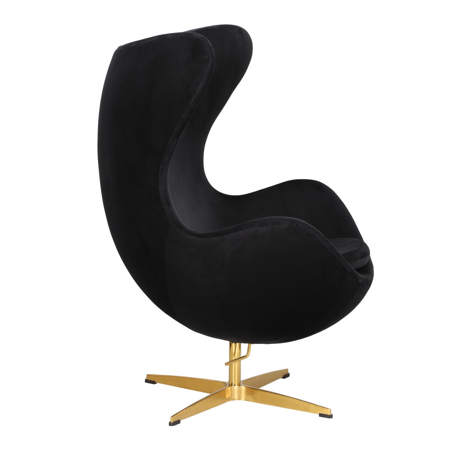 Fotel Jajo to kultowy nowoczesny fotel, który pokochali architekci na całym świecie. Fotel wykorzystywany jest w designerskich aranżacjach prywatnych mieszkań, nowoczesnych biur czy stylowych hotelach. Forma fotela Jajo została zainspirowana jednym z najbardziej znanych na świecie modeli Egg. Twórcą fotela Egg jest Arne Jacobson, który stworzył to rozpoznawalne siedzisko na zlecenie hotelu Radisson SAS w Kopenhadze w 1958 roku. Fotel Jajo rewelacyjnie odnajdzie się w przestrzeniach modernistycznych, eklektycznych, glamour czy pop-art. Nowatorska forma sprawia, że fotel możemy dopasować niemal do każdej przestrzeni, aby stał się on niepowtarzalnym dodatkiem i przełamaniem głównego charakteru wnętrza. Fotel Jajo został wykonany z tkaniny welwetowej dostępnej w czarnym kolorze i złotej lub srebrnej podstawie. Wygodę gwarantuje również zamieszczona na siedzisku poduszka. Podstawa fotela z funkcją obrotową. Funkcja kołyski. Brak możliwości zablokowania kąta odchylenia. Wymaga montażu.Cechy produktu