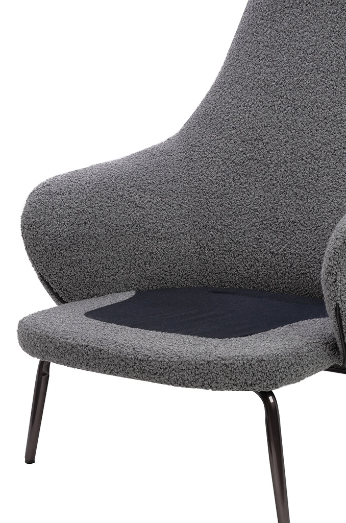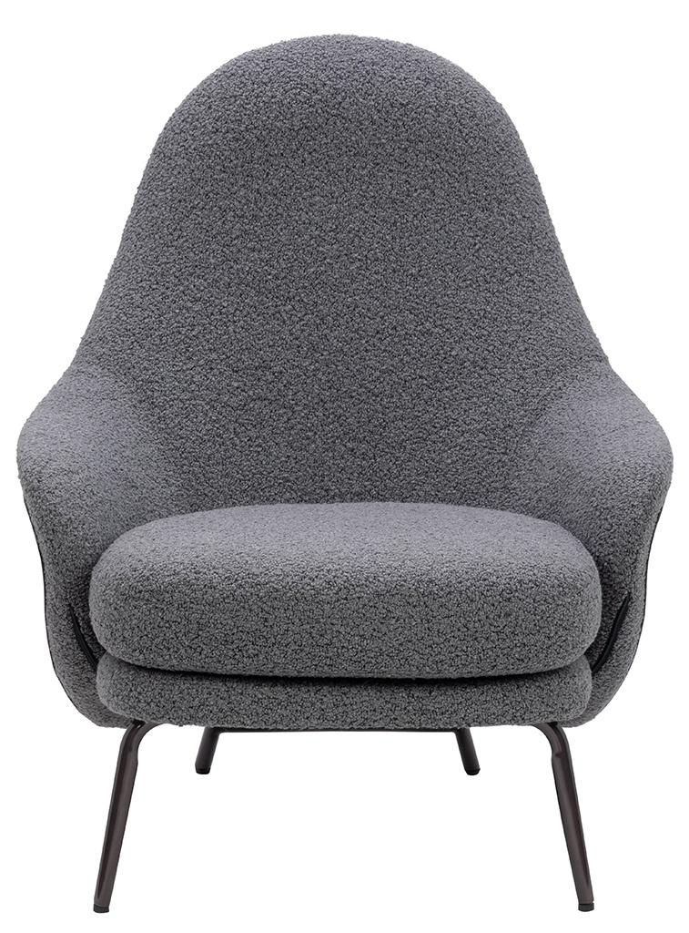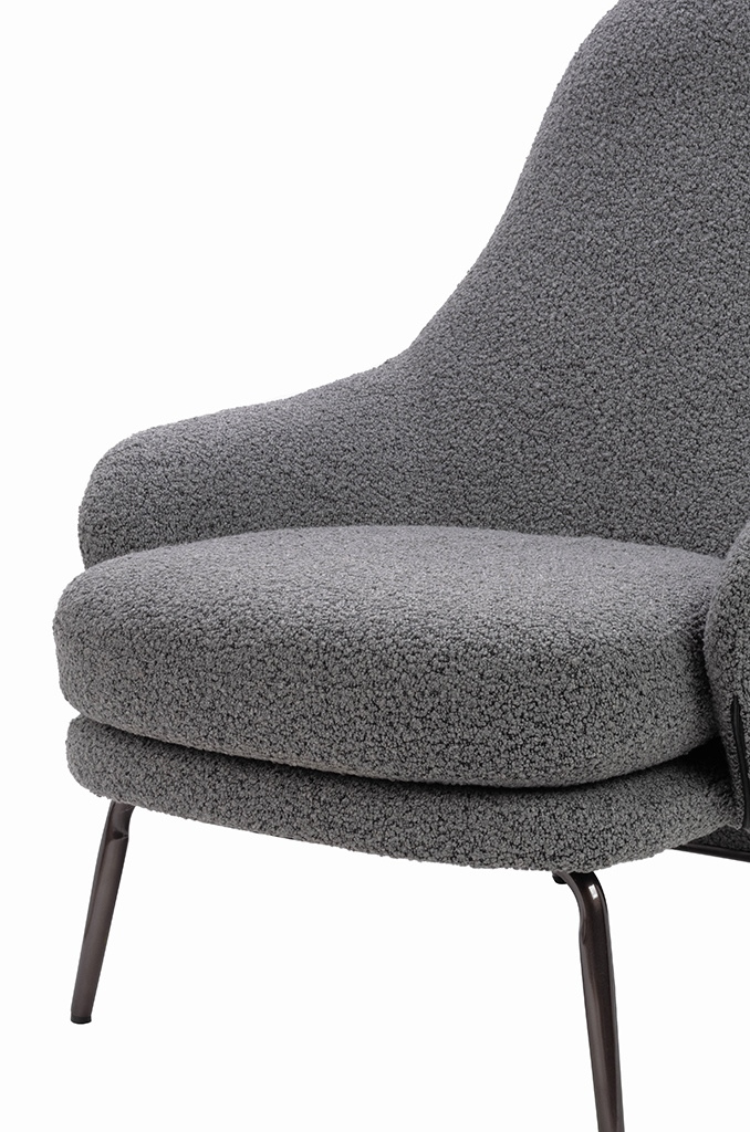 - Fotel LOBBY TEDDY szary - stal, opal. Współczesny design połączony z artystyczną formą. Stalowa podstawa w kolorze czarnego opalu nadaje całości stabilności oraz eleganckiego, nowoczesnego wyglądu. Tkanina typu bouclé urzeka wyjątkową miękkością i subteln