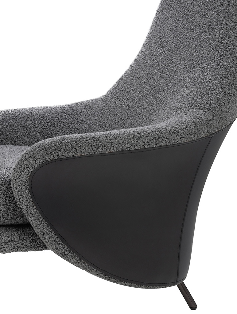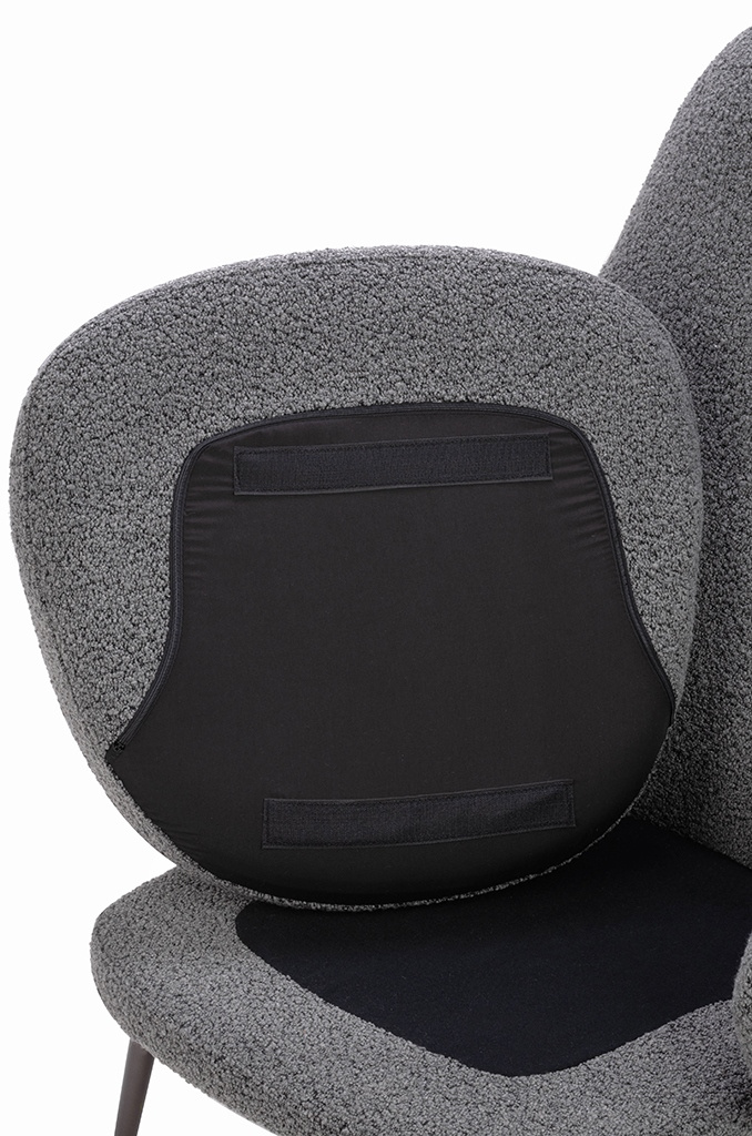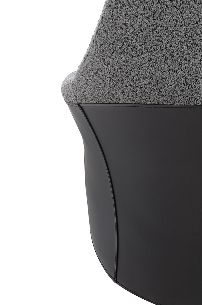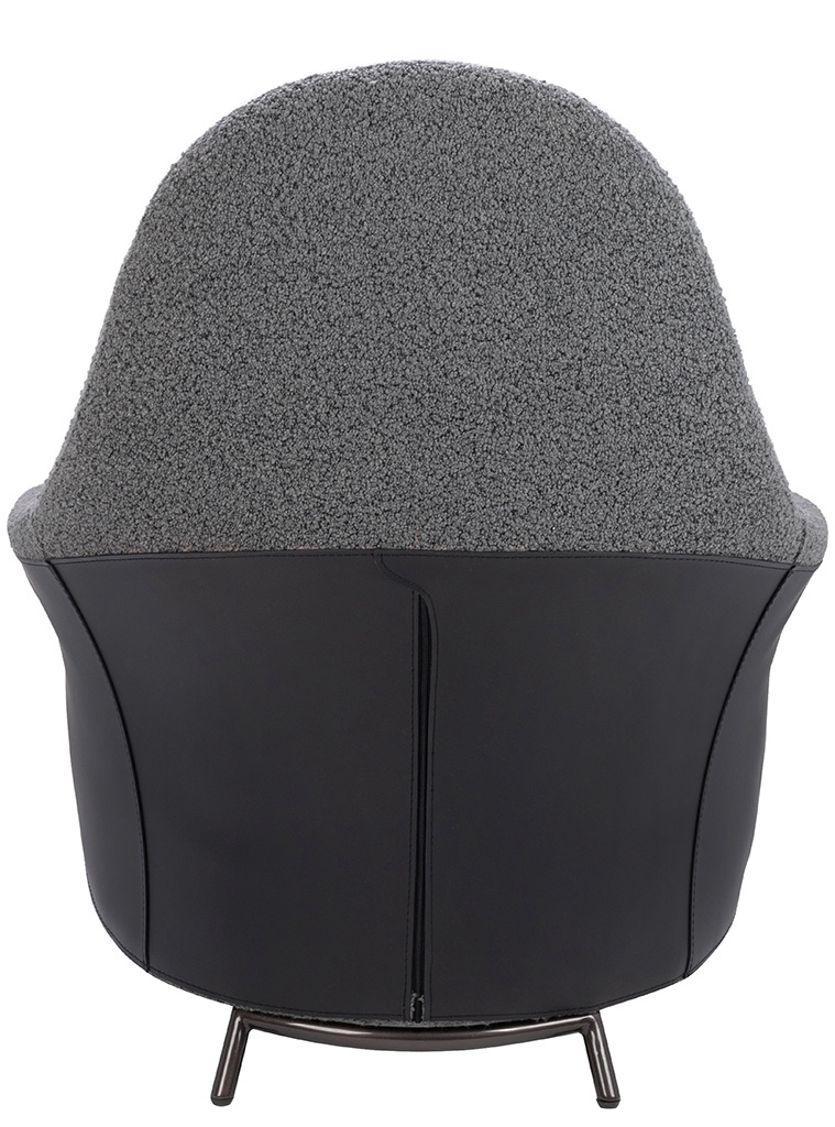 Fotel LOBBY TEDDY szary - stal, opal. Współczesny design połączony z artystyczną formą. Stalowa podstawa w kolorze czarnego opalu nadaje całości stabilności oraz eleganckiego, nowoczesnego wyglądu. Tkanina typu bouclé urzeka wyjątkową miękkością i subtelną strukturą, wprowadzając do wnętrza paryską elegancję i przytulny urok. Oparcie i siedzisko obszyto elegancką, ciemnoszarą tkaniną, która tworzy efektowne zestawienie z czarną ekoskórą na tylnej części fotela. Poduszka mocowana na rzepy pełni funkcję zarówno dekoracyjną, jak i praktyczną, zwiększając komfort użytkowania. Doskonale sprawdzi się w nowoczesnych, eleganckich oraz przytulnych wnętrzach, dodając im stylu i harmonii. Wymiary: wys. 96,5 cm / szer. 78,5 cm / gł. 91 cm Wysokość do krawędzi siedziska: 43 cm Wysokość do podłokietników: 52 cm Sposób wysyłki: paleta.Cechy produktu