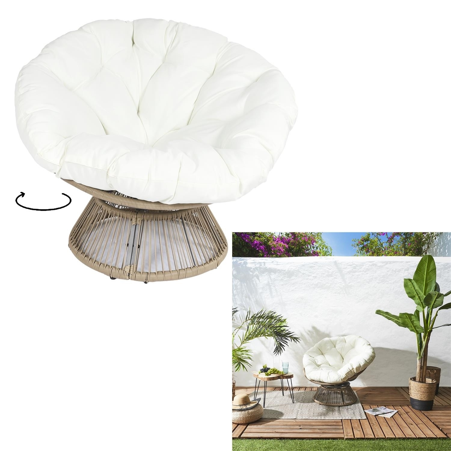 Fotel Nucan biały/ naturalny obrotowy | | Elite Living – Wyszukane meble i oświetlenie do domu, biura i ogrodu.
