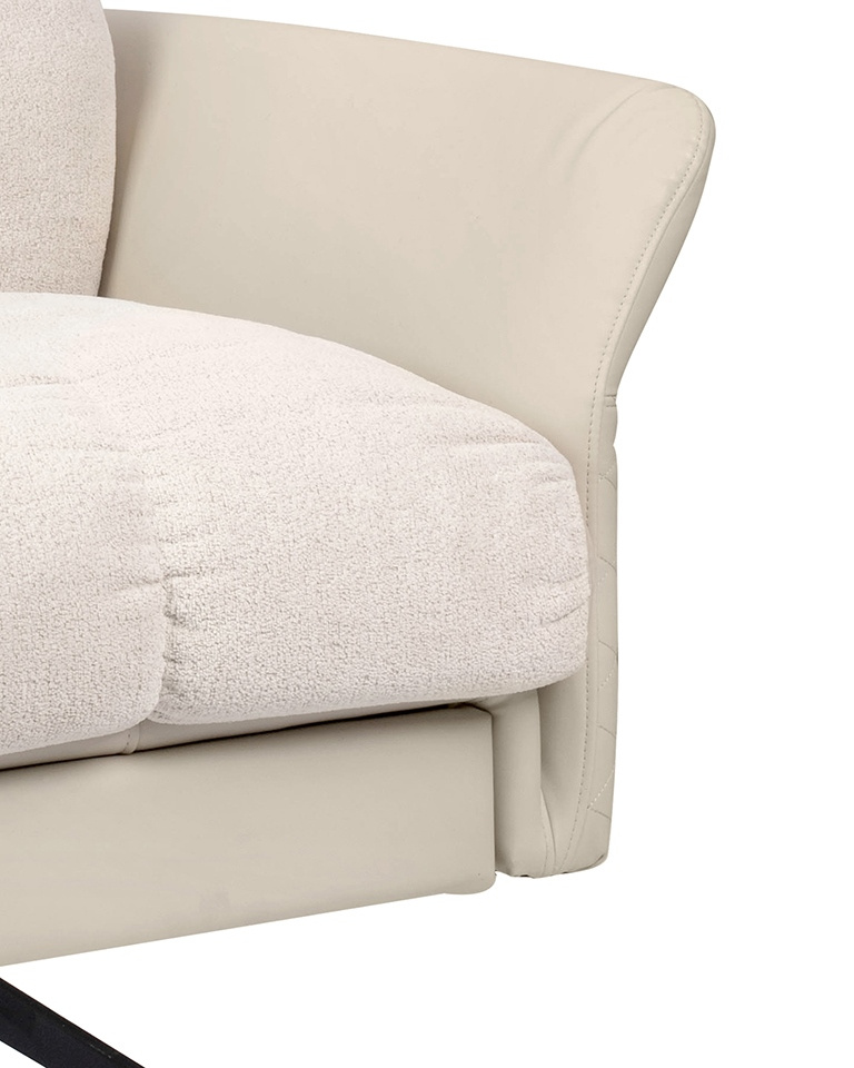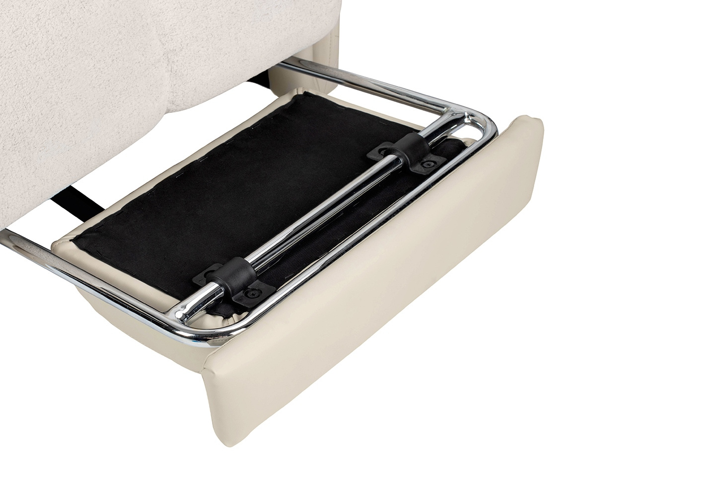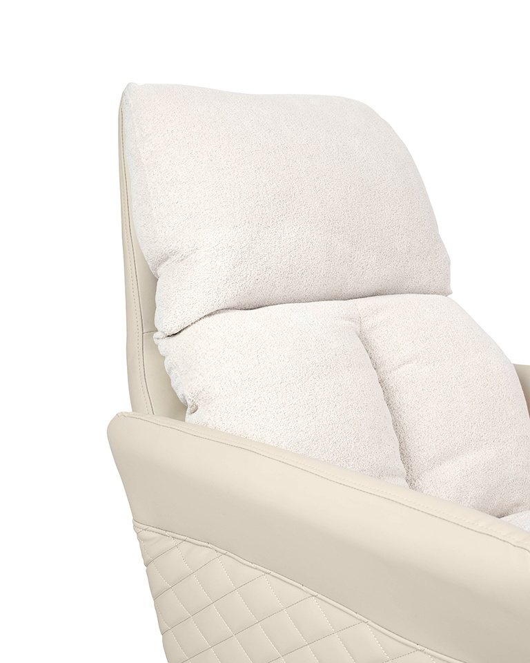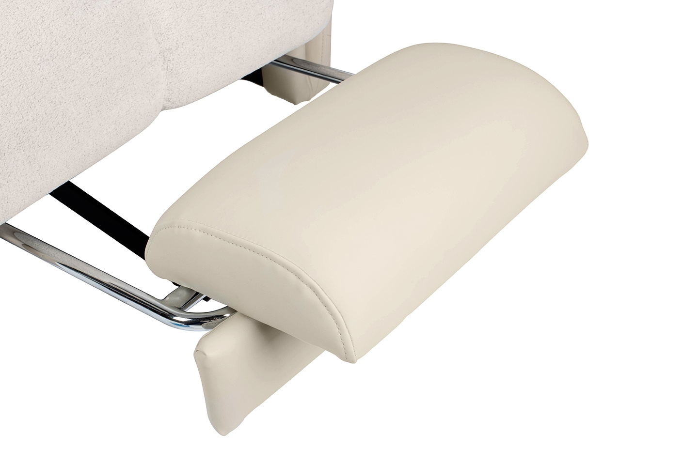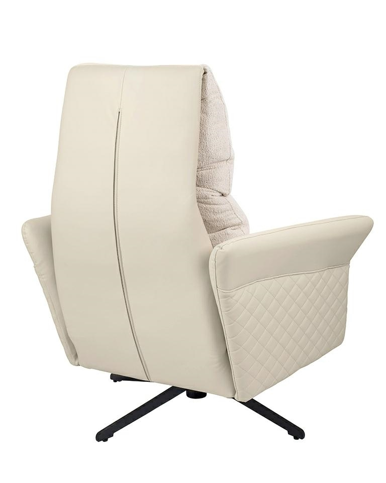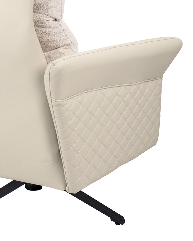 Fotel obrotowy RELAX beżowy - skóra PU, stal. Ponadczasowy, przytulny fotel z najwyższym komfortem użytkowania. Korpus fotela oraz podłokietniki wykończono skórą PU w beżowym odcieniu. Pikowania na boku dodają całości elegancji oraz niesamowitego stylu. Wygodne siedzisko obszyto przyjemną oraz modną w dotyku tkaniną Teddy. Całość osadzono na stabilnej stalowej podstawie w czarnej kolorystyce. Dodatkowym atutem jest obrotowy mechanizm, rozkładane oparcie oraz możliwość wysunięcia podnóżka. To wszystko gwarantuje nam wyjątkowy relaks oraz design. Wymiary: wys. 98 cm / szer. 83 cm / gł. 80 - 170 cm Wysokość do krawędzi siedziska: 42 cm Siedzisko: szer. 50 cm / gl. 52 cm Oparcie: wys. 60 cm / szer. 50 cm Wysokość do podłokietników: 57 cm Podłokietniki: szer. 15 cm / gł. 56 cm Wysokość do podnóżka: 35 cm Podnóżek: wys. 18 cm / szer. 45 cm / gł. 37 cm Podstawa: 57 x 57 cm.Cechy produktu