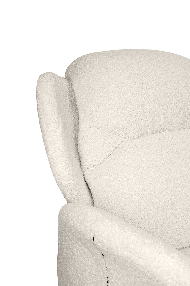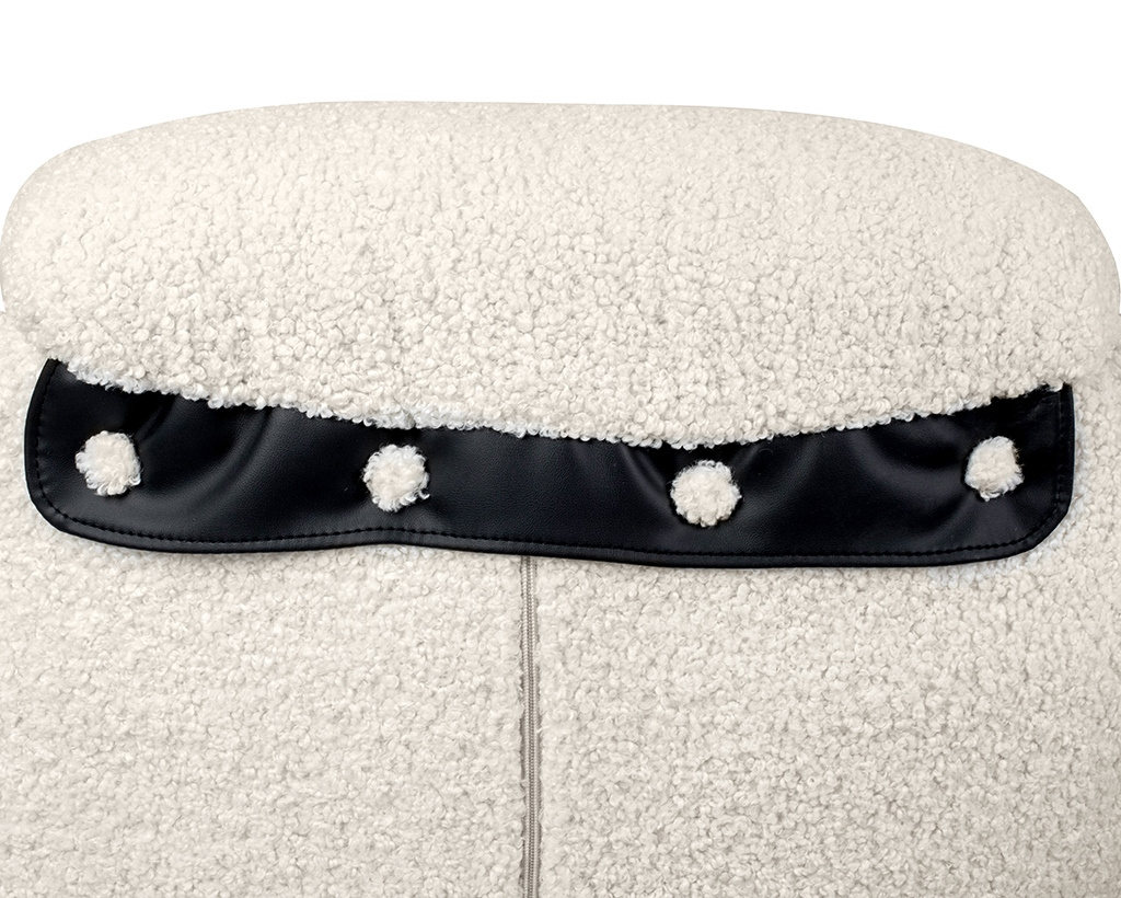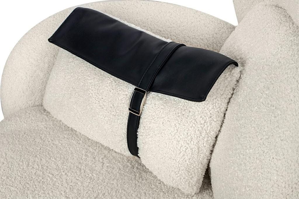Fotel obrotowy TAPE TEDDY biały. Oryginalna stylistyka połączona z najwyższą wygodą. Całość wykończono niezwykle miękką i przyjemną w dotyku tkaniną teddy. Obrotową postawę wykonano ze stali w kolorze czarnym. Wyprofilowany kształt fotela zapewnia wyjątkowy komfort użytkowania i pozwala całkowicie się zrelaksować. Ciekawym akcentem jest poduszka wzbogacona ozdobnym czarnym paskiem z ekoskóry. Fotel Tape Teddy polecamy do wnętrz klasycznych, jak i nowoczesnych. Wymiary: wys. 92 cm / szer. 93 cm / gł. 97 cm Wysokość do krawędzi siedziska: 39 cm Siedzisko: szer. 63 cm / gł. 66 cm Oparcie: wys. 70 cm / szer. 56 cm Wysokość do podłokietników: 58 cm Podłokietniki: szer. 11 cm / gł. 62 cm Poduszka: 28 x 49 x 8 cm Podstawa: śr. 50 cm.Cechy produktu