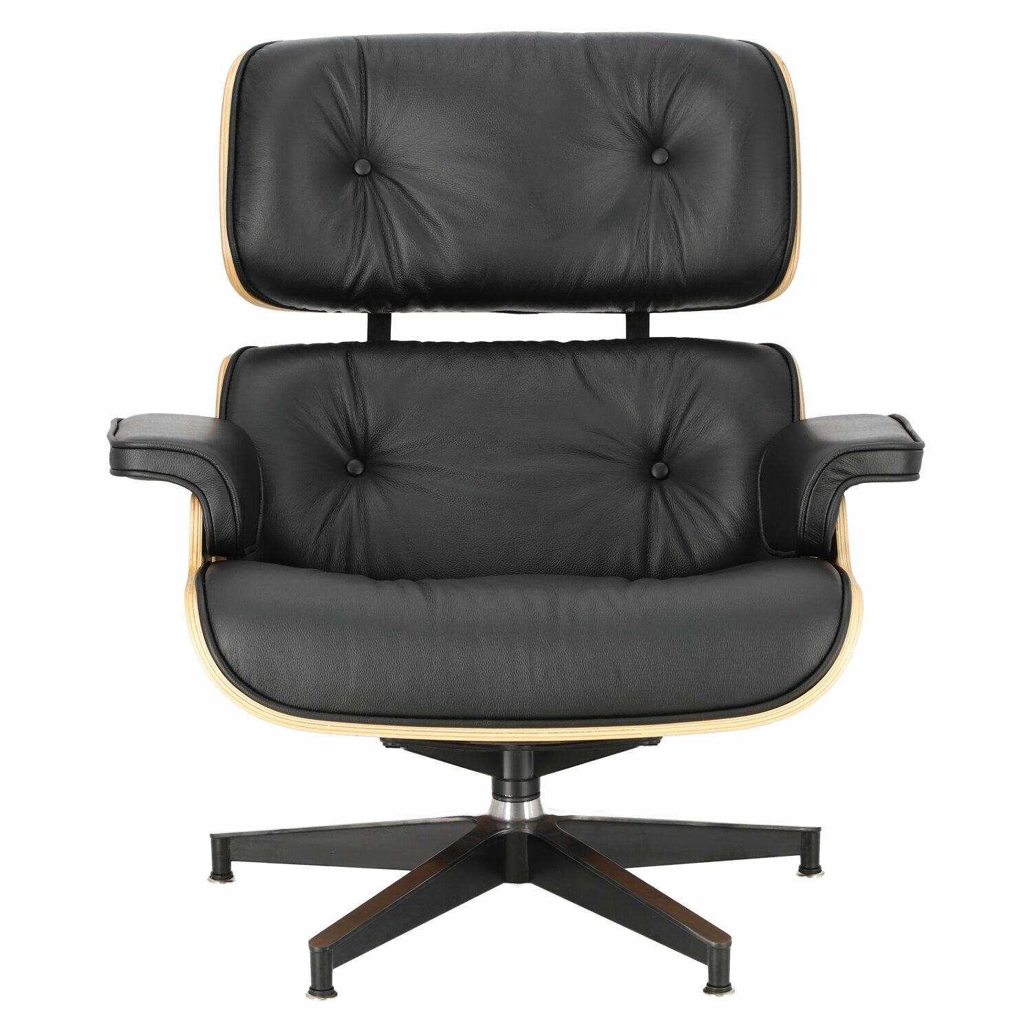 Fotel składa się z trzech sklejkowych muszelek połączonych ze sobą metalowymi elementami. Siedzisko i oparcie tapicerowane są miękką, skórą naturalną. Obrotowa baza wykonana z aluminium występuje w dwóch wersjach. Pierwsza ma boki i spód nóg lakierowane na czarno a wierzch polerowany (ta wersja najczęściej jest spotykana z ciemną skórą) . Druga wersja bazy jest w całości polerowana i występuje najczęściej z białą skórą. Podnóżek dostępny jest oddzielnie w ofercie naszego sklepu.Cechy produktu