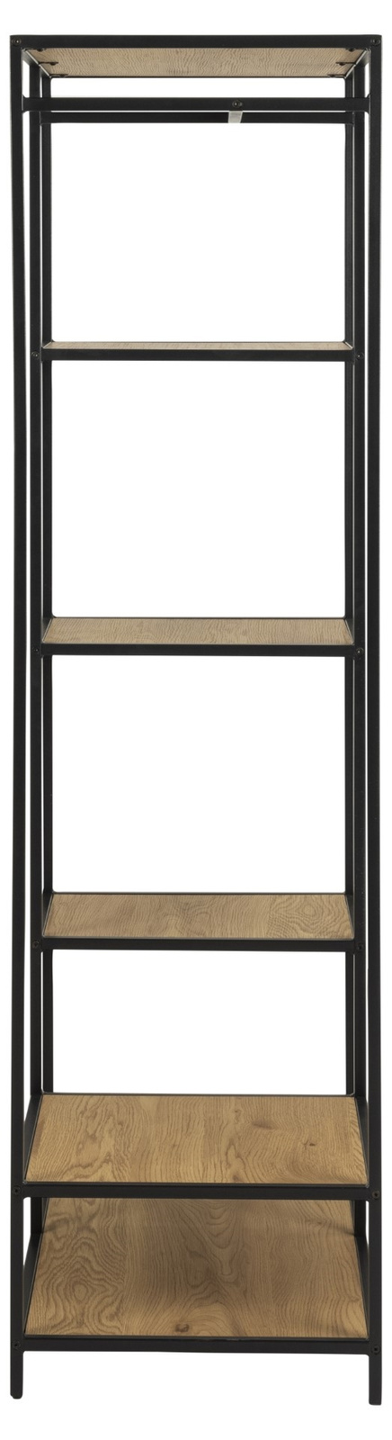 W kolekcji mebli Seaford znajduje się także garderoba. Wykonany z płyt MDF oraz malowanego proszkowo metalu charakteryzuje się minimalistyczną formą oraz wyjątkową wytrzymałością. Posiada pięć szerokich półek oraz miejsce na wieszaki z większymi elementami odzieży. Ten regał nada się nie tylko do garderoby, ale także do przedpokoju a nawet sypialni. Z łatwością można dopasować go do reszty wystroju. Ilość kartonów: 1 Wymiary kartonów: 170x59x11cm Waga kartonów: 19,8kgCechy produktu
