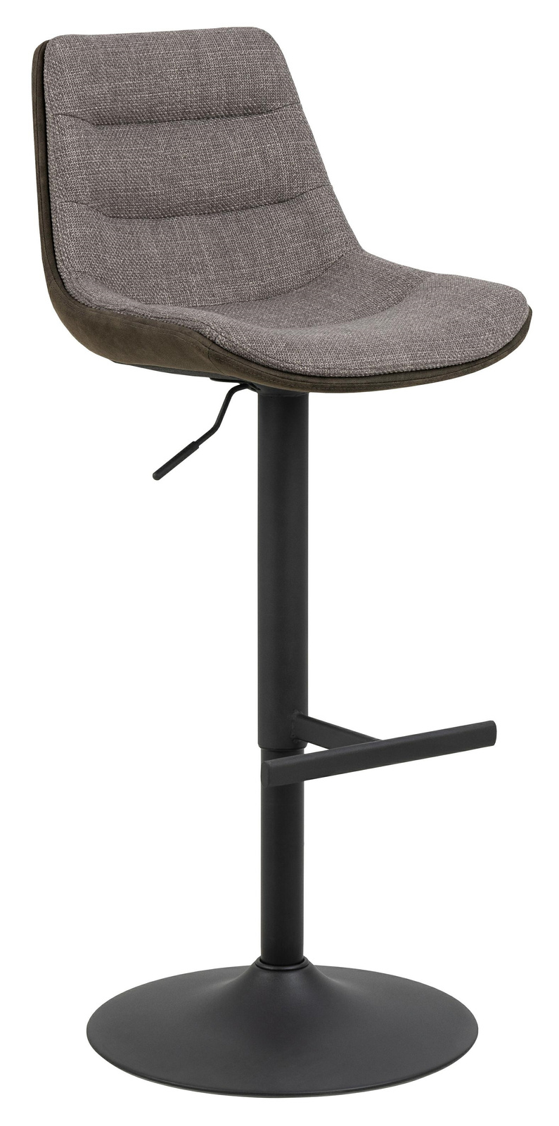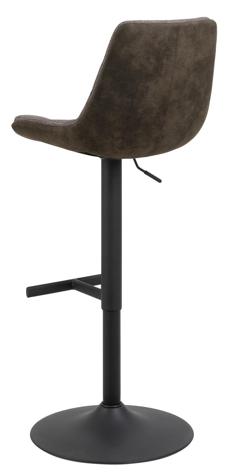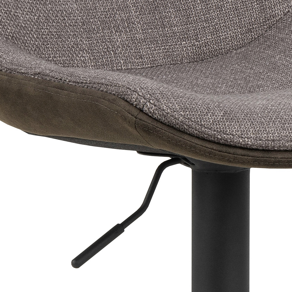 - Ten stołek barowy to nowoczesna opcja dla współczesnego domu. Ma wyrazisty charakter dzięki tkaninie z mikrofibry, która ma specjalną powłokę zapewniającą surowy wygląd. Czarna podstawa w kształcie trąbki z prostym podnóżkiem podkreśla wygląd stołka barow