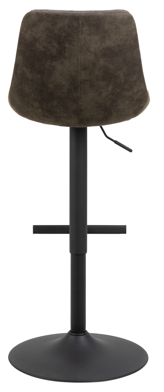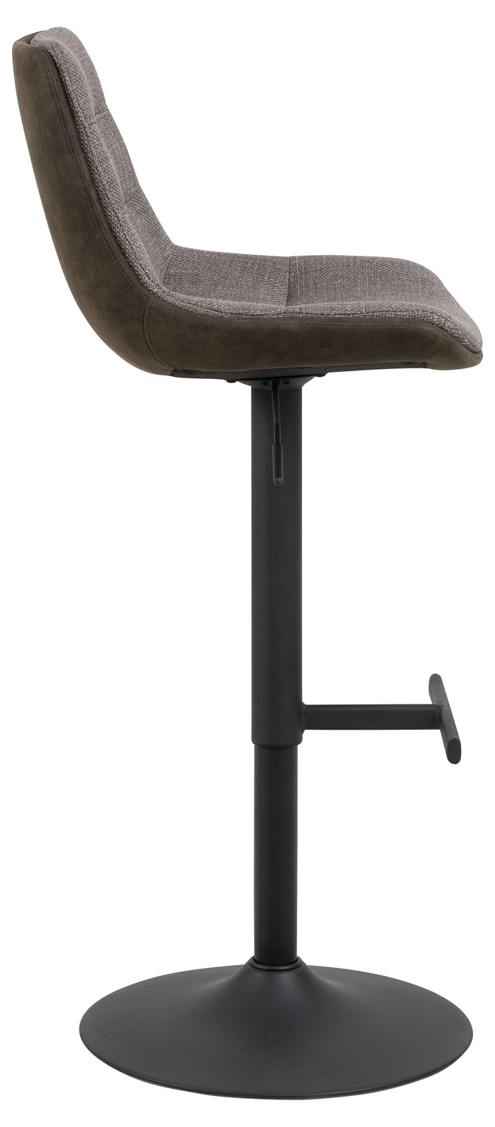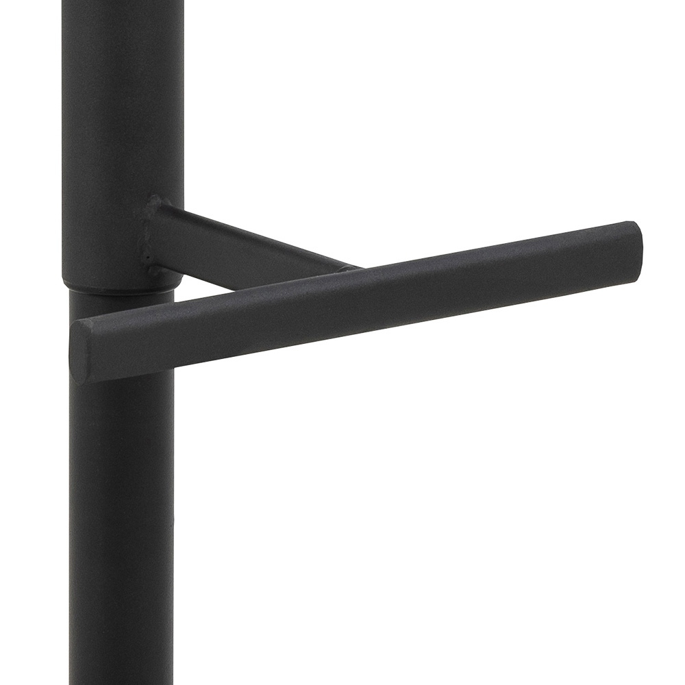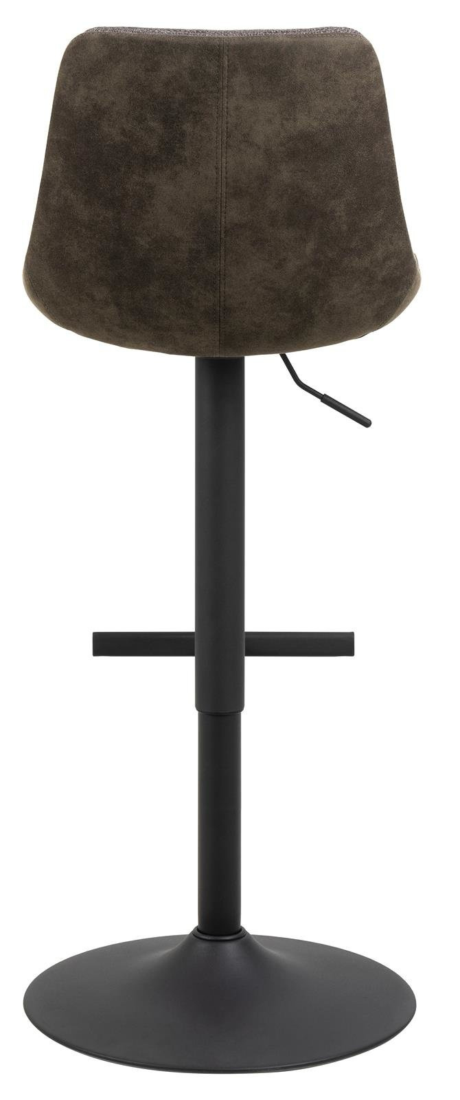 - Ten stołek barowy to nowoczesna opcja dla współczesnego domu. Ma wyrazisty charakter dzięki tkaninie z mikrofibry, która ma specjalną powłokę zapewniającą surowy wygląd. Czarna podstawa w kształcie trąbki z prostym podnóżkiem podkreśla wygląd stołka barow