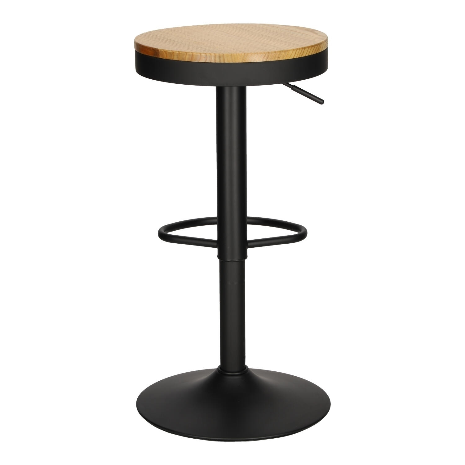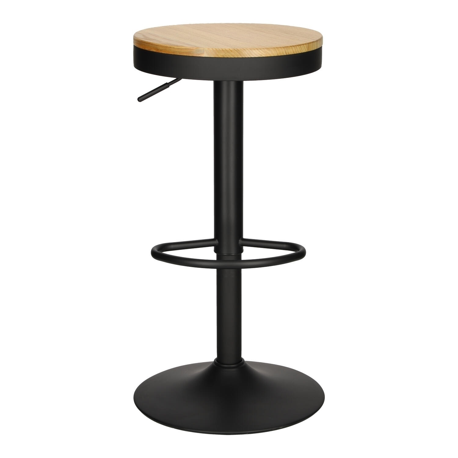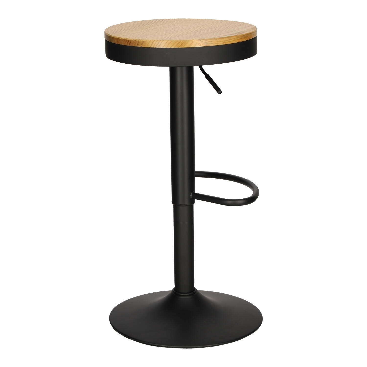 Rustykalny hoker Lofter to połączenie okrągłego siedziska z naturalnego drewna wiązu oraz metalowej, matowej proszkowo podstawy. Hoker o regulowanej wysokości od 60 do 82 cm sprawdzi się zarówno przy niskiej wyspie kuchennej jak i wysokim barze. Hoker wyposażony został w metalowy podnóżek którego wysokośc uzależniona jest od wysoości ustawionej na hokerze. Jej przedział to od 20 do 42 cm. Regulacja wysokości odbywa się za pomocą rączki w kolorze pdostawy, którą unosimy i modyfikujemy według własnego uznania wysokość. Dzięki podnośnikowi gazowemu regulacja jest płynna i intuicyjna. Hoker ze względu na wykończenie jest odporny, a jego czyszczenie odbywa się tylko za pomoca wilgotnej szmatki z odrobiną mydła. Max. obciążenie hokera 130kg. Średnica siedziska: 36,5 cm Wysokość hokera regulowana od 60 do 82 cm Wysokość podnóżka regulowana od 20 do 42 cm Grubość siedziska: 6cm Hoker wymaga łatwego montażu. Max. 2 szt w kartonieCechy produktu