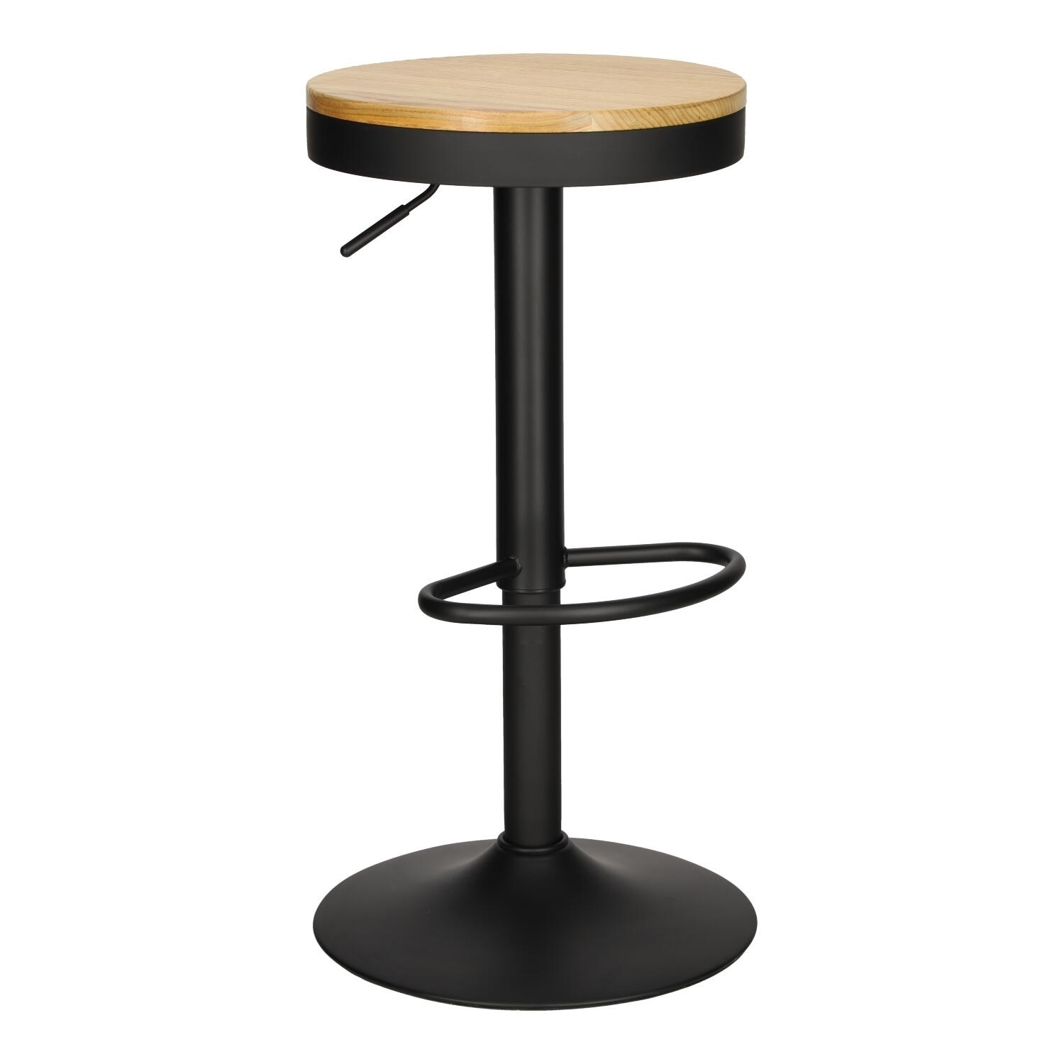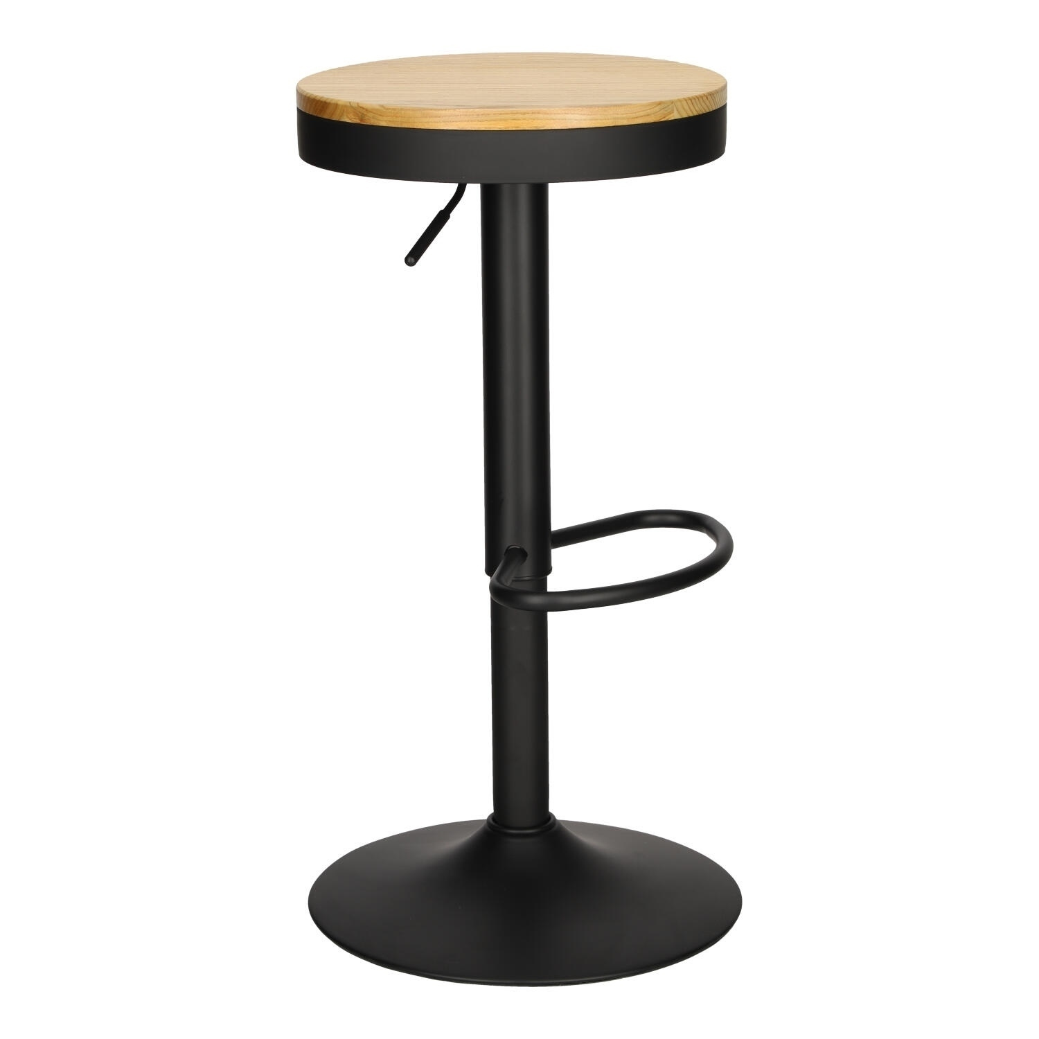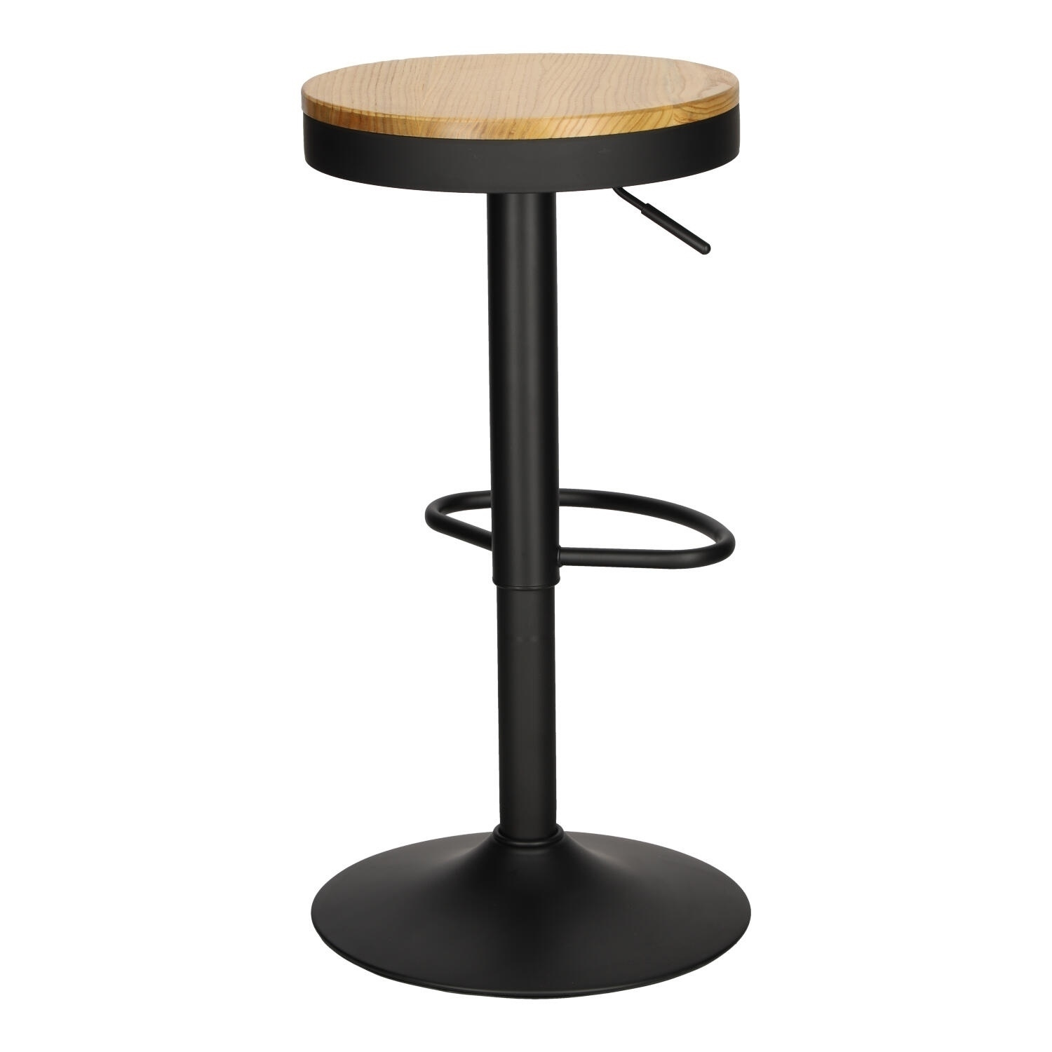 Rustykalny hoker Lofter to połączenie okrągłego siedziska z naturalnego drewna wiązu oraz metalowej, matowej proszkowo podstawy. Hoker o regulowanej wysokości od 60 do 82 cm sprawdzi się zarówno przy niskiej wyspie kuchennej jak i wysokim barze. Hoker wyposażony został w metalowy podnóżek którego wysokośc uzależniona jest od wysoości ustawionej na hokerze. Jej przedział to od 20 do 42 cm. Regulacja wysokości odbywa się za pomocą rączki w kolorze pdostawy, którą unosimy i modyfikujemy według własnego uznania wysokość. Dzięki podnośnikowi gazowemu regulacja jest płynna i intuicyjna. Hoker ze względu na wykończenie jest odporny, a jego czyszczenie odbywa się tylko za pomoca wilgotnej szmatki z odrobiną mydła. Max. obciążenie hokera 130kg. Średnica siedziska: 36,5 cm Wysokość hokera regulowana od 60 do 82 cm Wysokość podnóżka regulowana od 20 do 42 cm Grubość siedziska: 6cm Hoker wymaga łatwego montażu. Max. 2 szt w kartonieCechy produktu