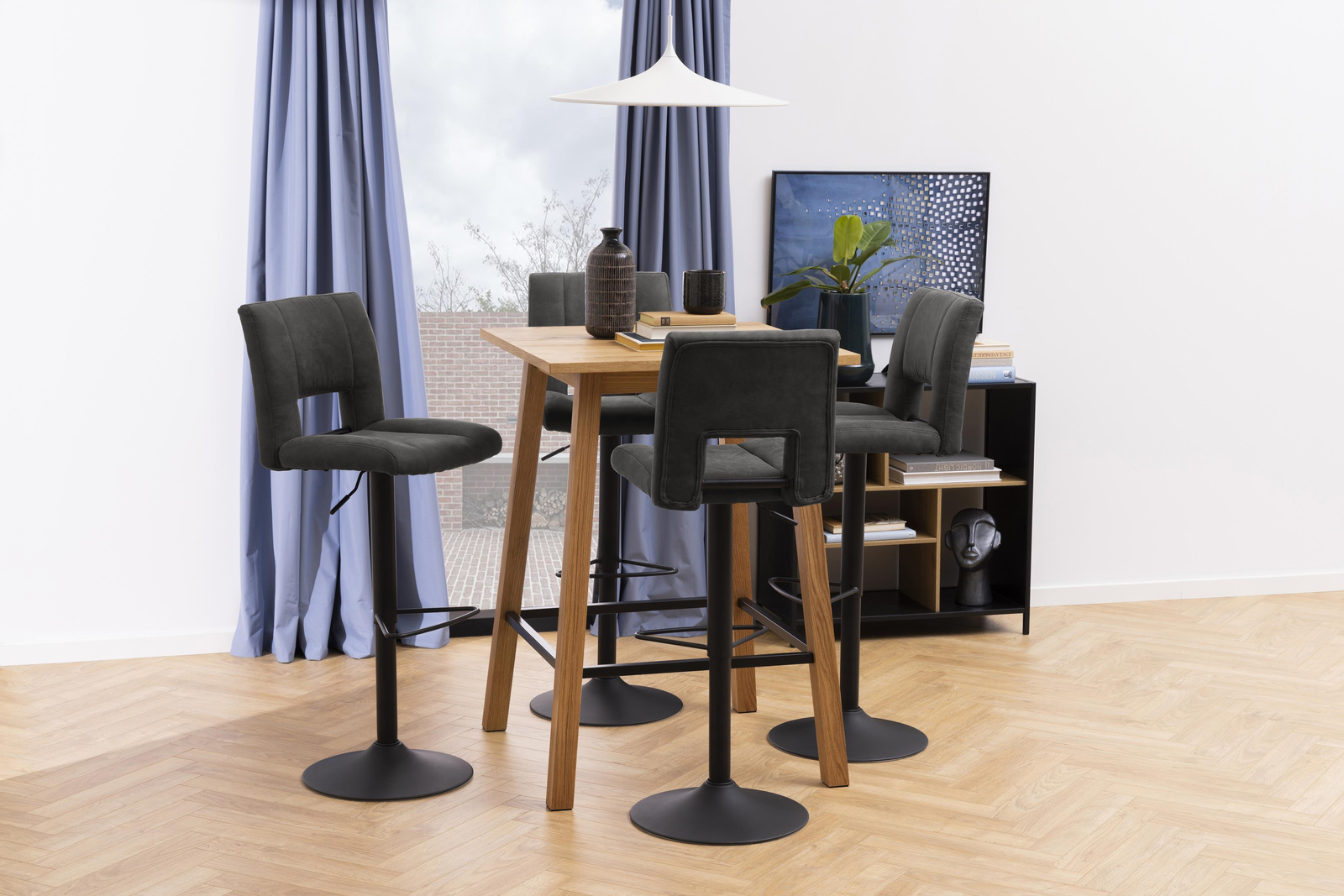 - Hoker Sylvia to mebel do nowoczesnego baru lub jadalni. Siedzisko z pianki poliuretanowej pokryte jest tapicerką z tkaniny Preston fabric anthracite 96. Podstawę stanowi długa, smukła noga w kolorze czarnym w wykończeniu matowym. Hoker poisada wysokie, wy
