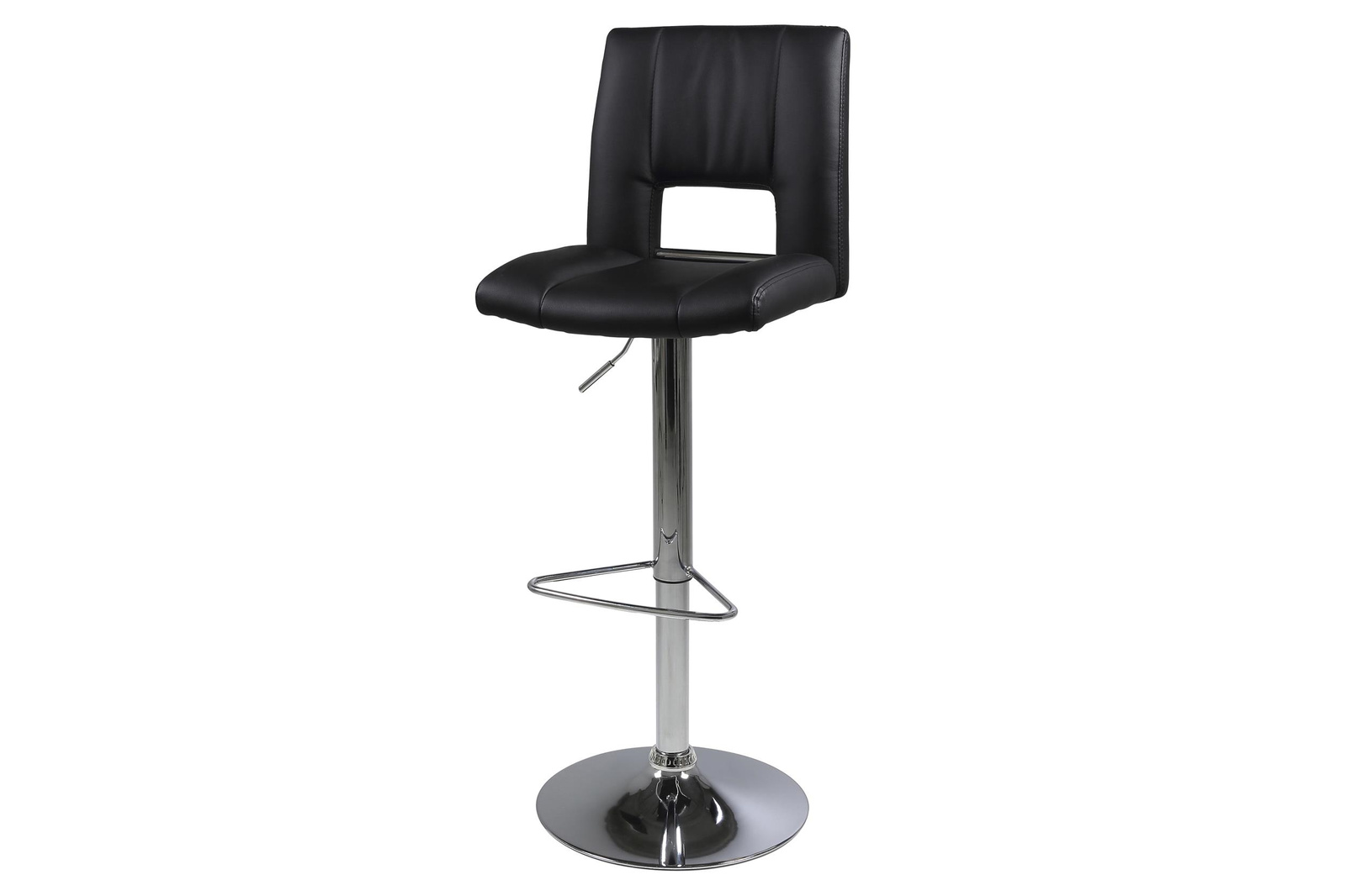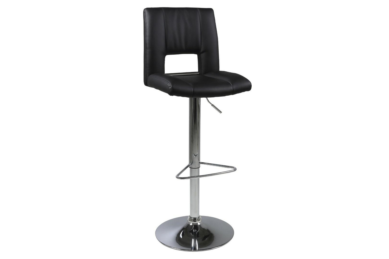 Hoker Sylvia to mebel do nowoczesnego baru lub jadalni. Siedzisko z pianki poliuretanowej pokryte jest tapicerką z tkaniny PU leather look black BK1. Podstawę stanowi długa, smukła noga z metalu w kolorze chromu. Hoker posiada wysokie, wygodne oparcie oraz dodatkowe podparcie dla nóg. Stołek posiada regulację wysokości. Ilość kartonów: 1 Wymiary kartonów: 60x44x44cm Waga kartonów: 10,5kgCechy produktu
