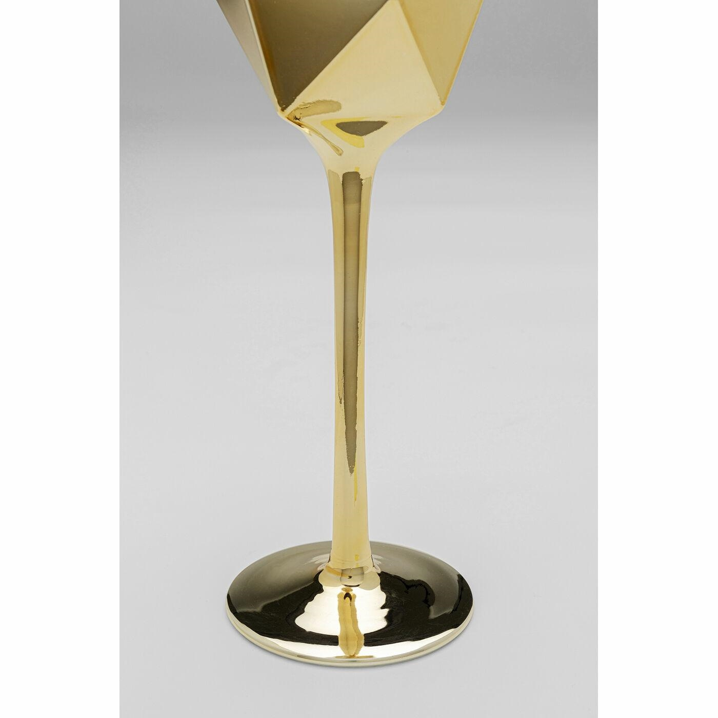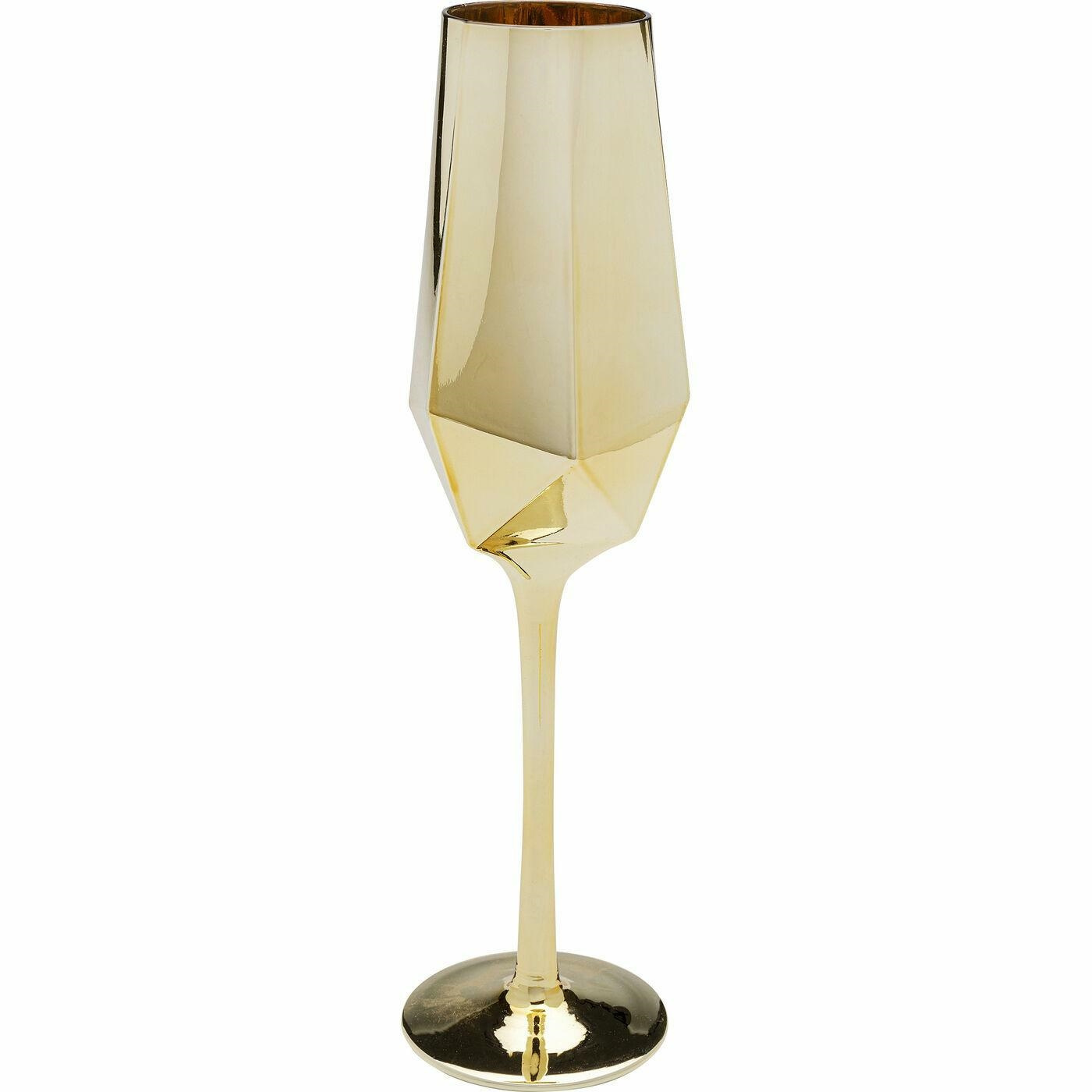 • KARE komplet kieliszków do szampana DIAMOND 365 ml złoty. Ekskluzywny element zastawy stołowej, który zachwyca swoim geometrycznym kształtem i eleganckim wykończeniem. Wykonany z kolorowego szkła, ma pojemność 365 ml, co sprawia, że jest idealnym wyborem