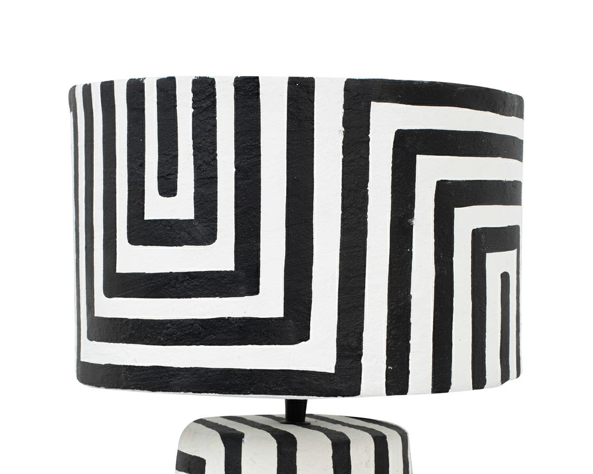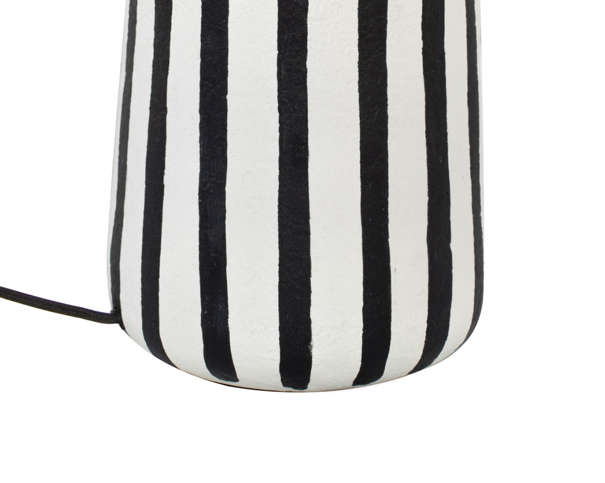 - KARE lampa stołowa STRISCE 44 cm biało-czarna. Niezwykła, oryginalna lampa stołowa Strisce udekoruje nie jedno wnętrze swoją wyjątkową stylistyką. Elegancka bryła w kolorystyce biało-czarnej wykonana została ręcznie z papieru mache, dzięki czemu każdy egz