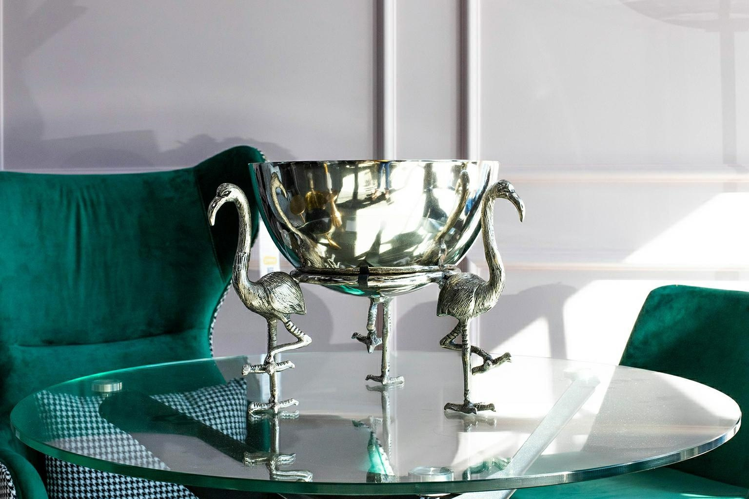 - KARE miska dekoracyjna FLAMINGO. Nowoczesna propozycja od marki Kare Design z pewnością zajmie centralne miejsce podczas każdej uroczystości. Dzięki trzem figurkom flamingów niosących srebrną miskę ozdobi każdy stół w jadalni i doskonale sprawdzi się jako
