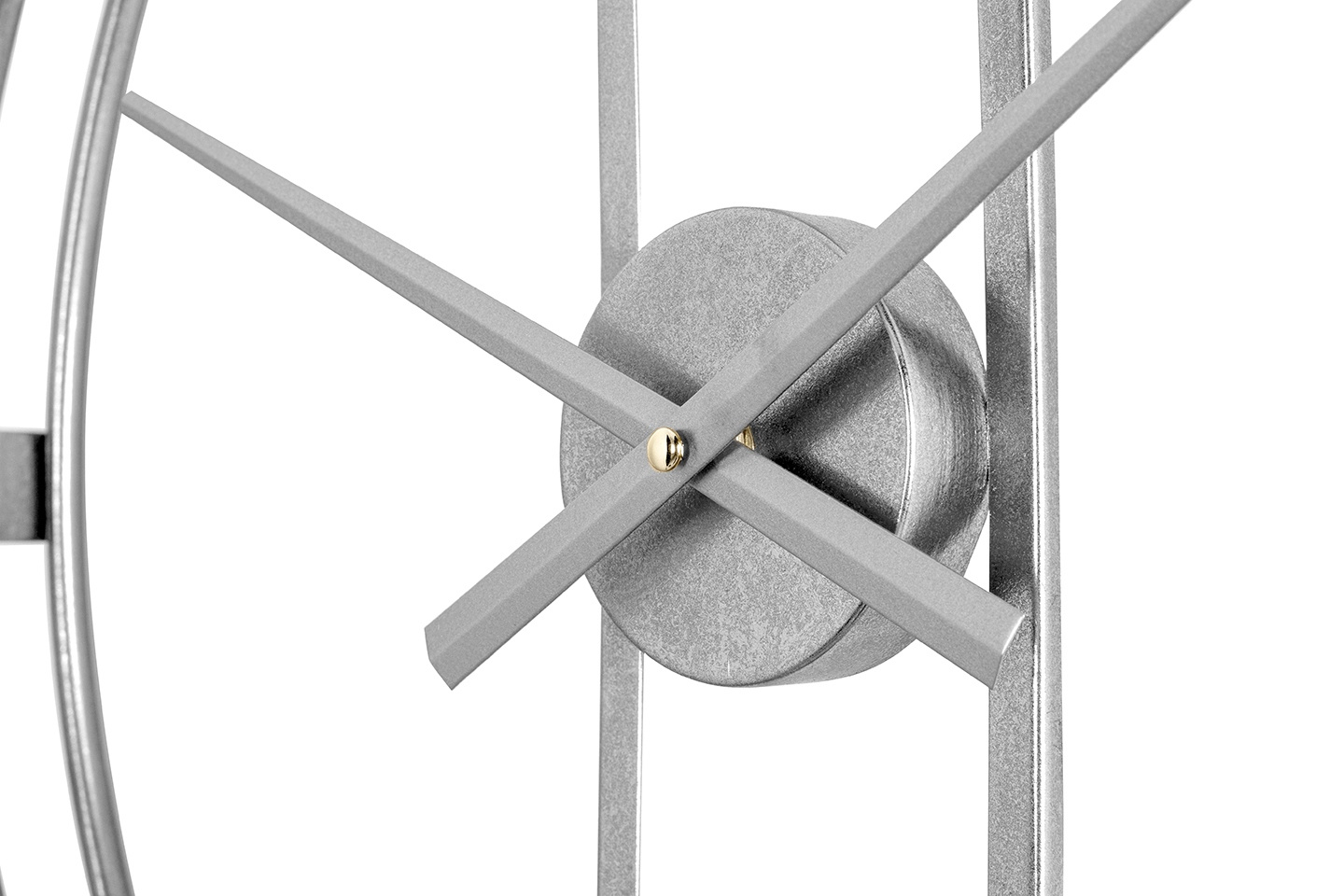 KARE zegar CLIP 60 srebrny. Wyrafinowany, wyjątkowy zegar od marki Kare Design. Okrągłą tarczę wykonano ze stali malowanej proszkowo i wykończono w pięknym matowym srebrnym kolorze. Clip będzie doskonałą ozdobą ścienną w nowoczesnych, minimalistycznych wnętrzach. Dostępna również złota wersja. Wymiary: wys. 60 cm / szer. 60 cm / gł. 10 cm Waga netto: 1,1 kg.Cechy produktu