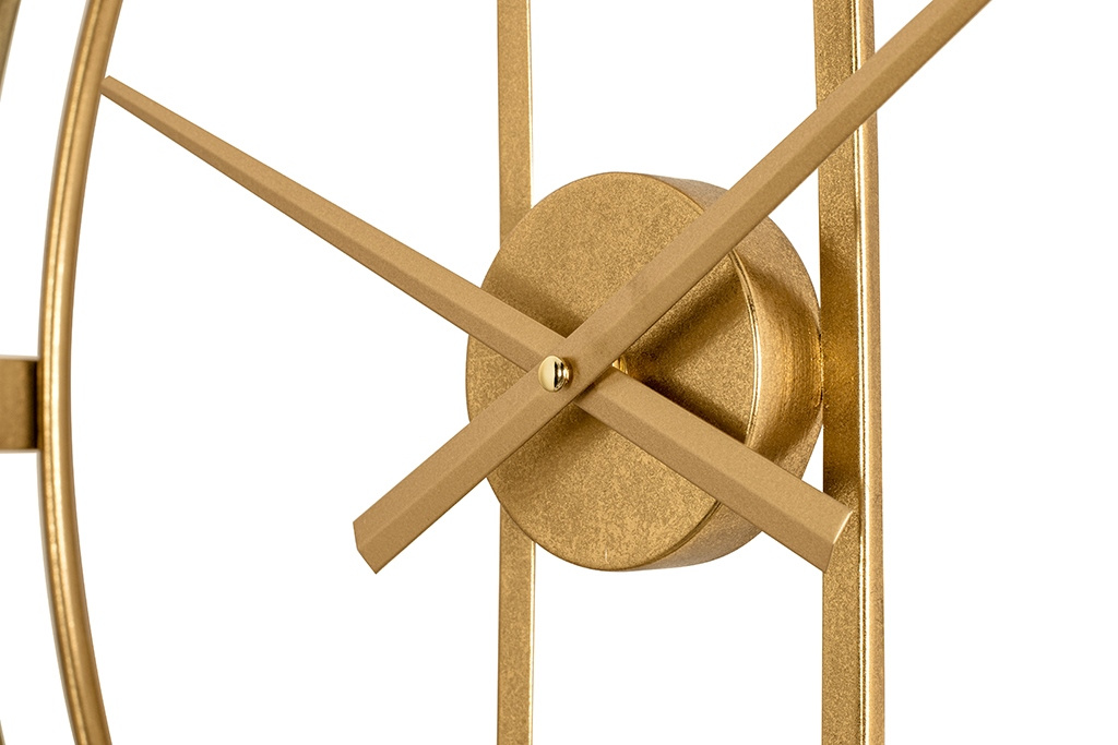 KARE zegar CLIP 60 złoty. Wyrafinowany, wyjątkowy zegar od marki Kare Design. Okrągłą tarczę wykonano ze stali malowanej proszkowo i wykończono w pięknym matowym złotym kolorze. Clip będzie doskonałą ozdobą ścienną w nowoczesnych, minimalistycznych wnętrzach. Wymiary: wys. 60 cm / szer. 60 cm / gł. 10 cm Waga netto: 1,1 kg.Cechy produktu